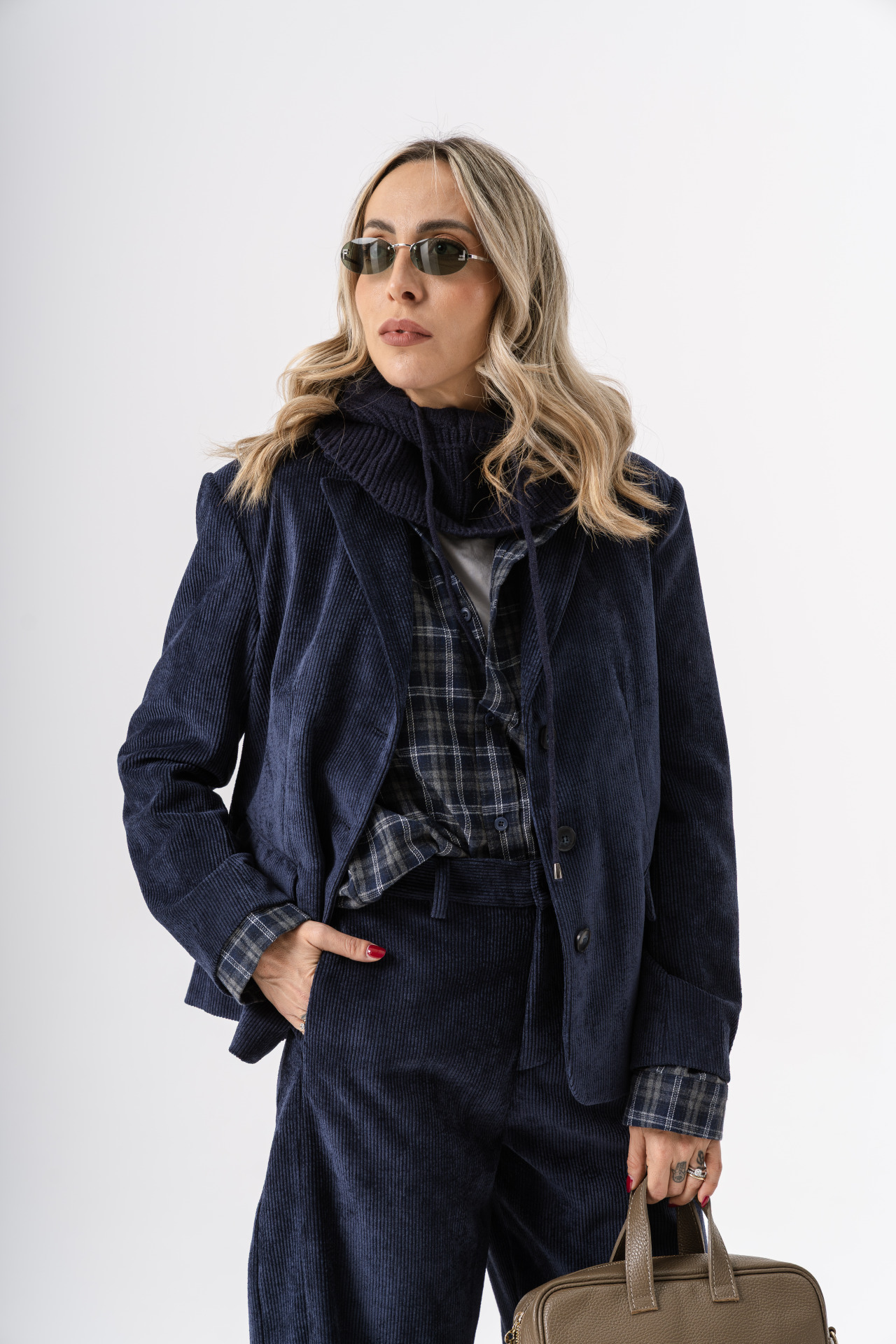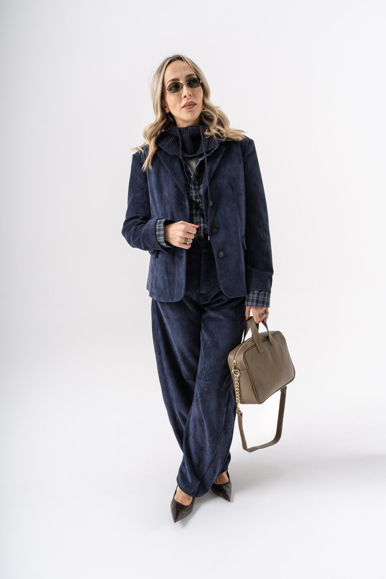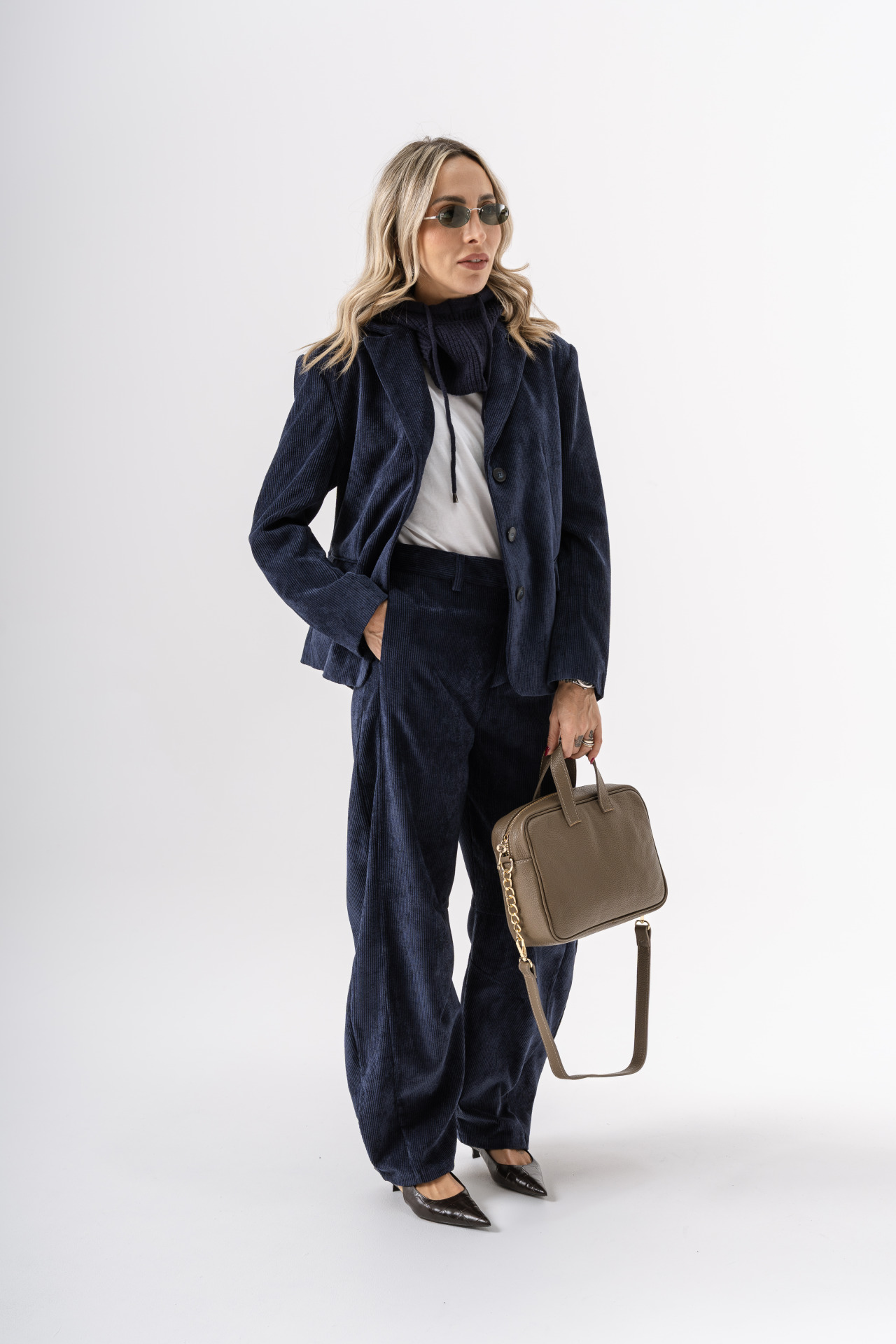 Sole in foto indossa la taglia S (Sole è alta 1.70 e veste la taglia 40), la modella bionda indossa la taglia L (la modella è alta 1.70 e veste la taglia 46).