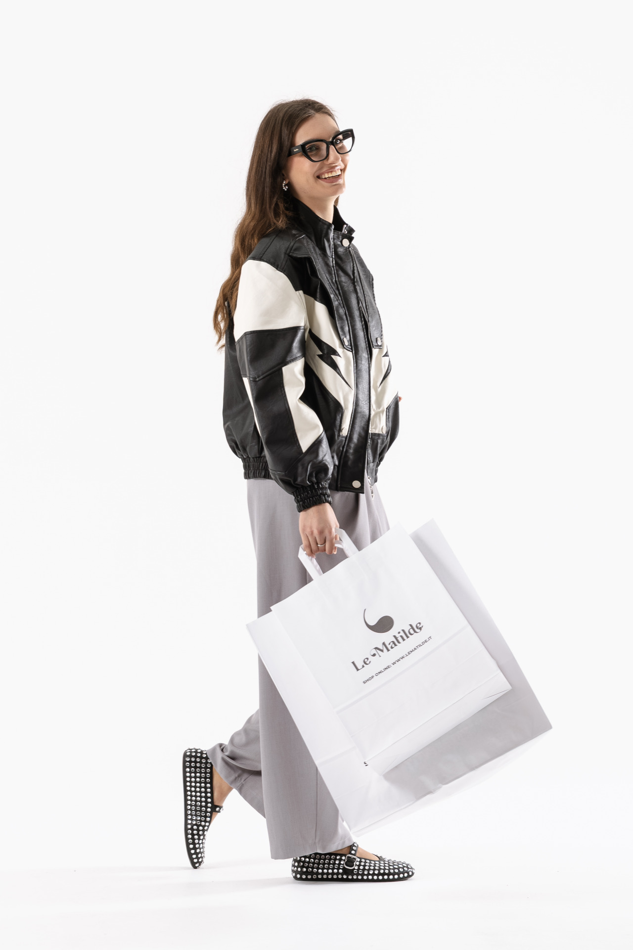 In foto indossata taglia S (la modella è alta 1.70 e veste la taglia 40).