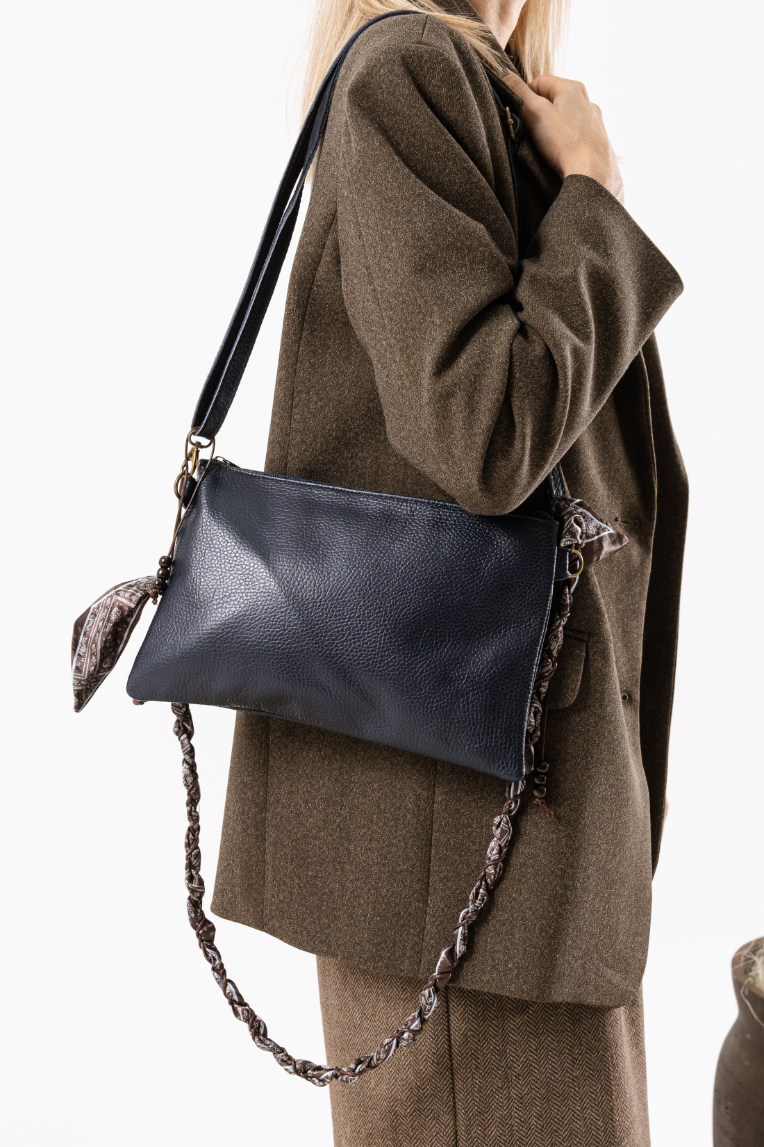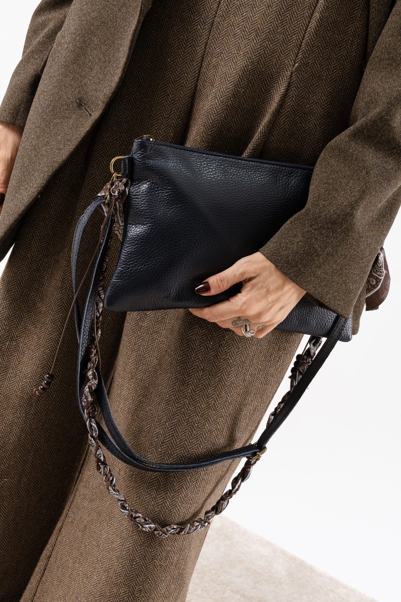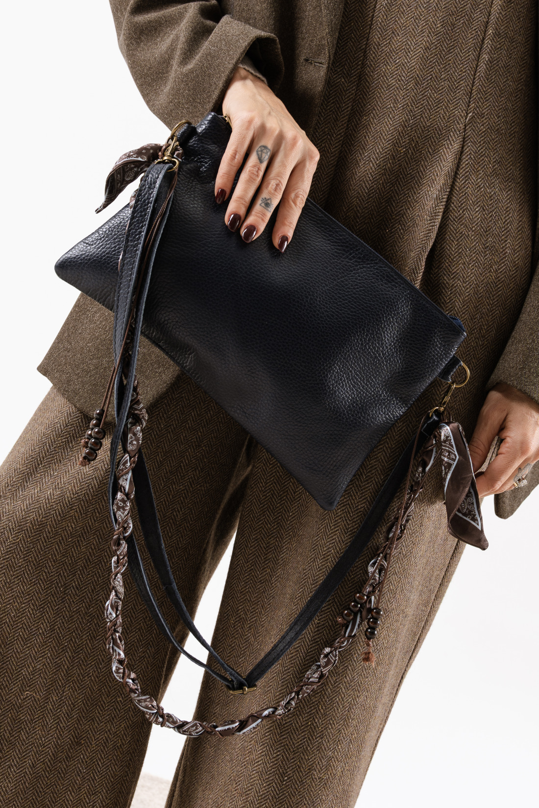 • tracolla regolabile in pelle