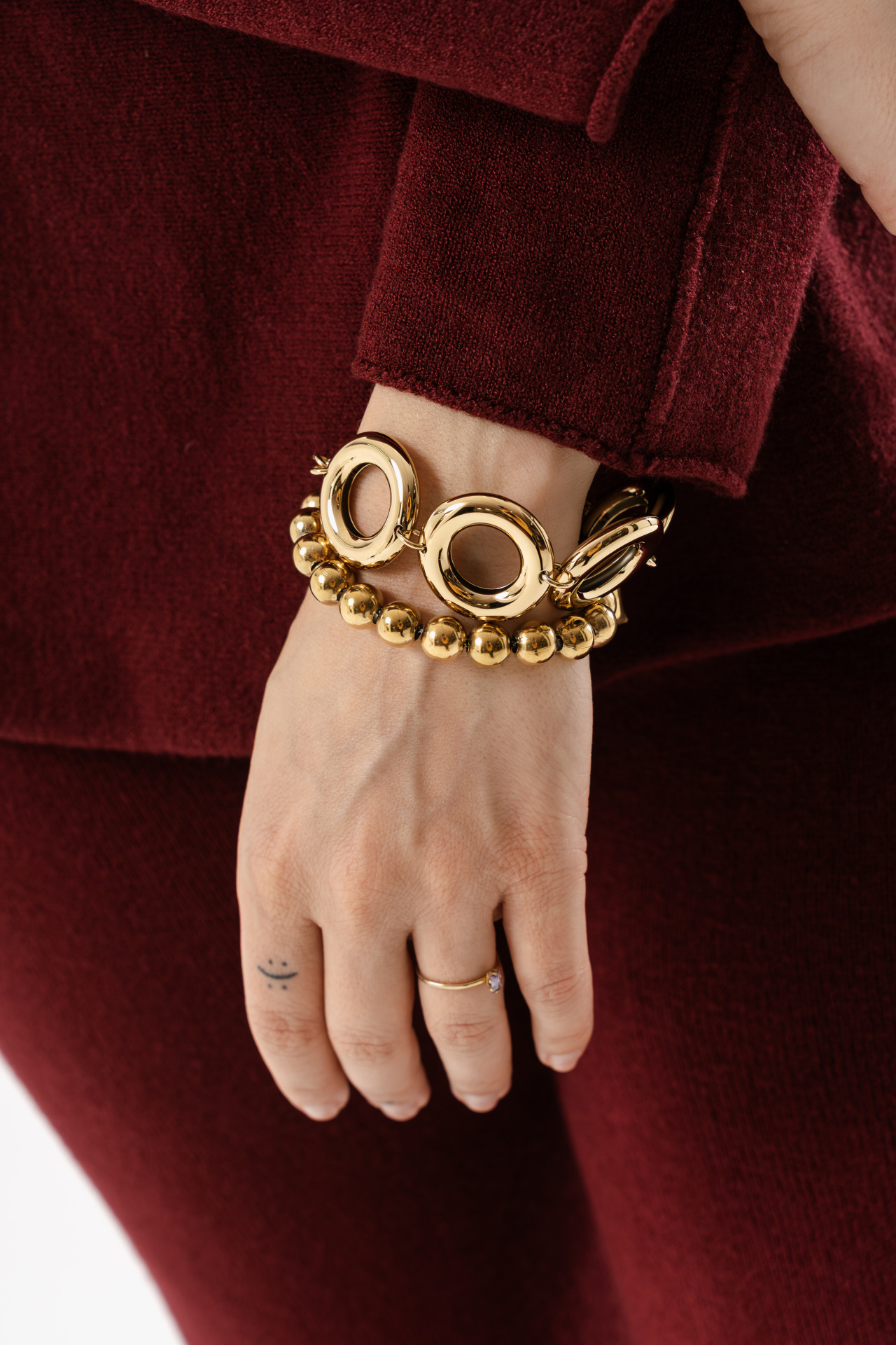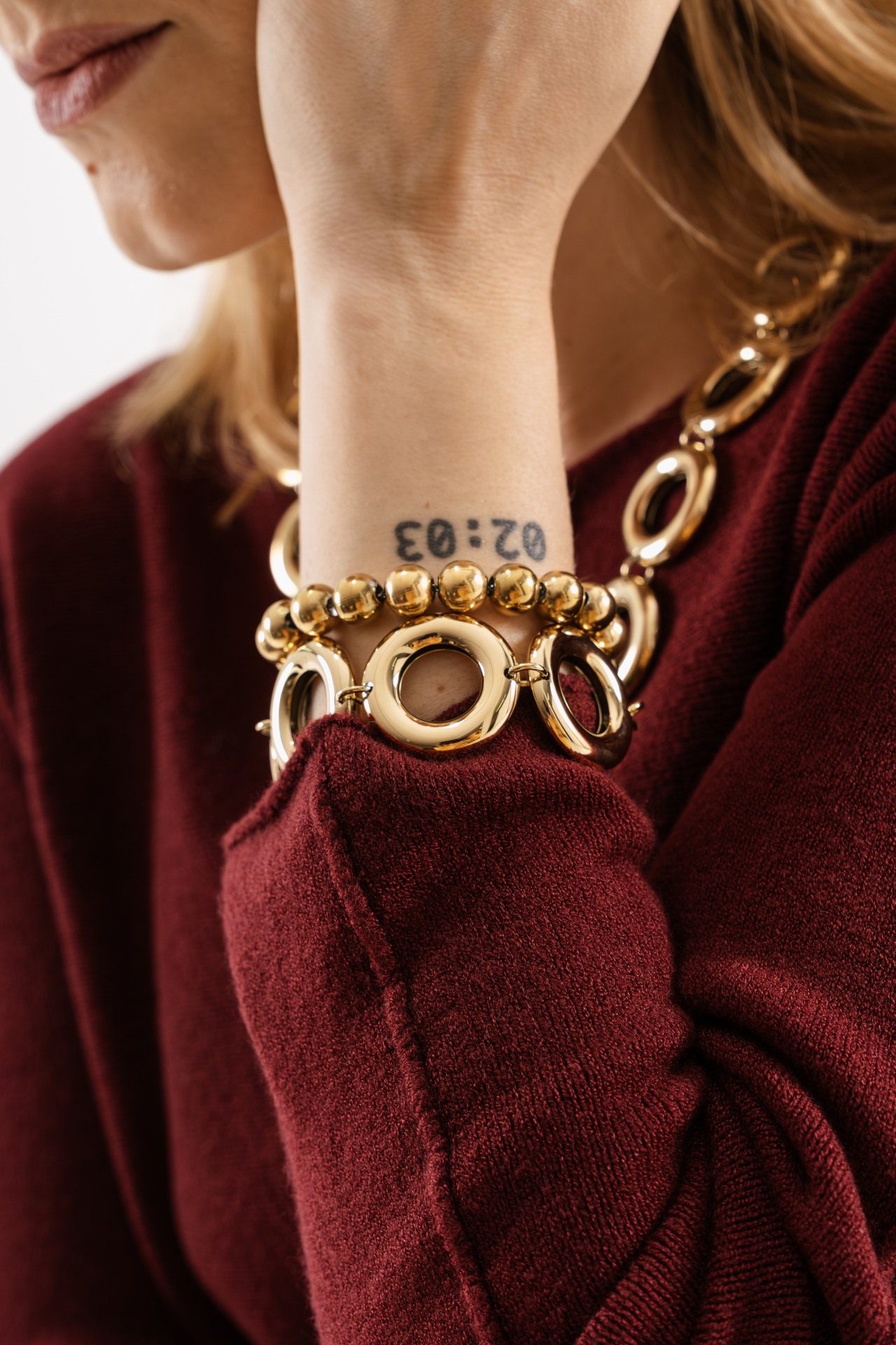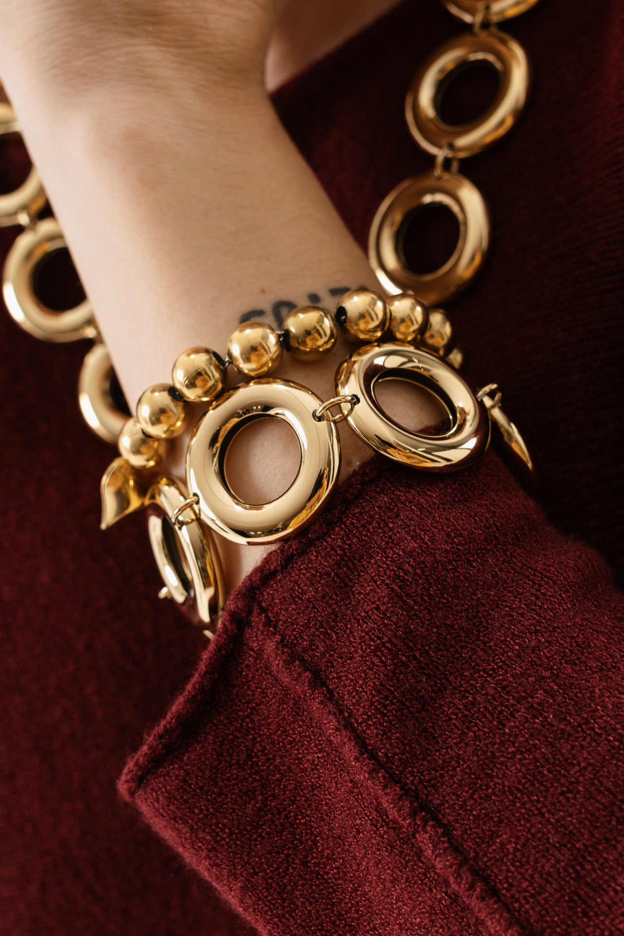 Bracciale in acciaio con sfere infilate e chiusura regolabile.