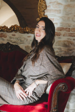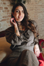Sole in foto indossa la taglia S (Sole è alta 1.70 e veste la taglia 40), la modella mora indossa la taglia M (la modella è alta 1.75 e veste la taglia 40).