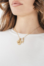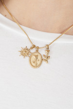 Collana in acciaio dorato con tre ciondoli. Chiusura regolabile.