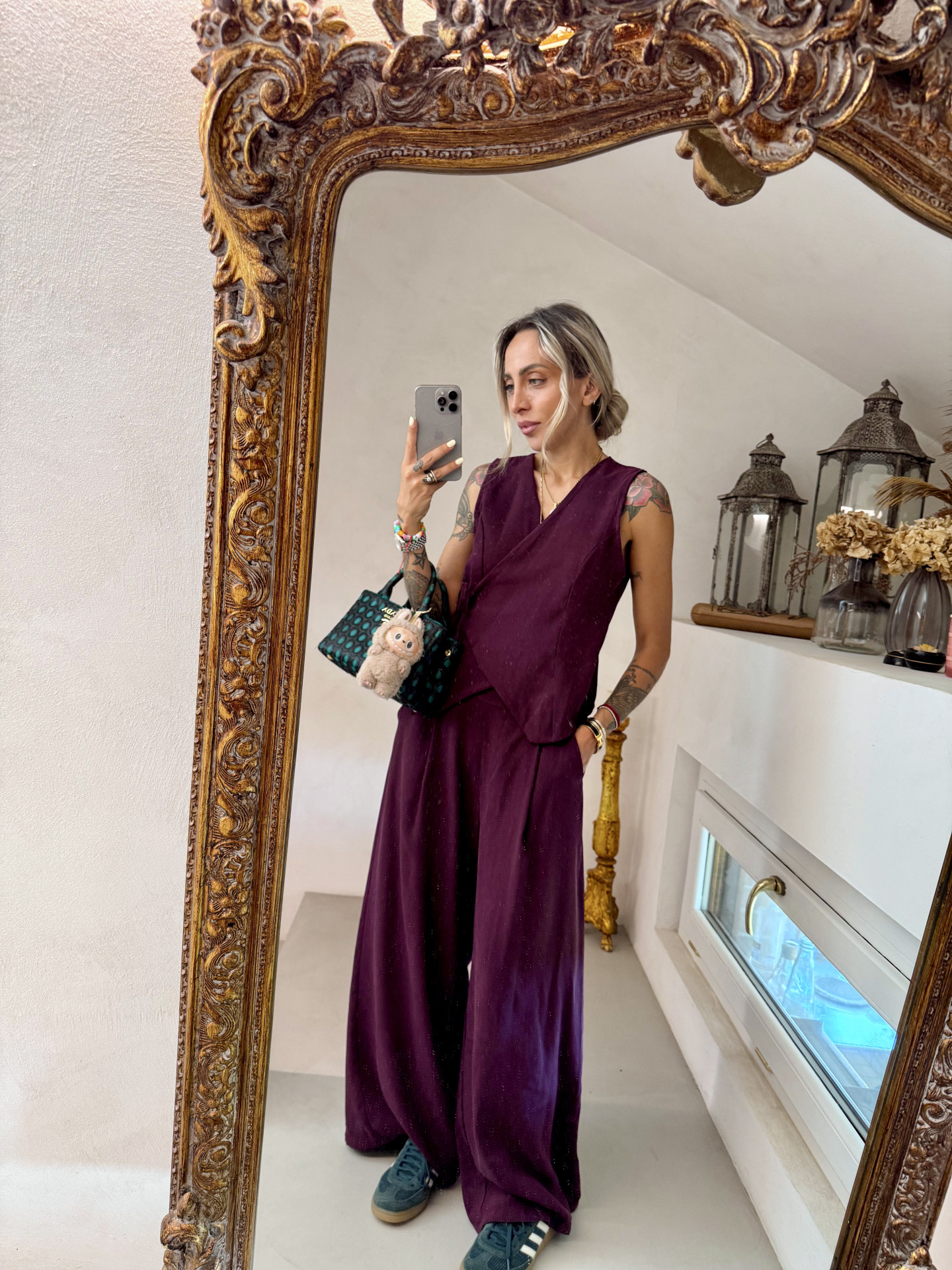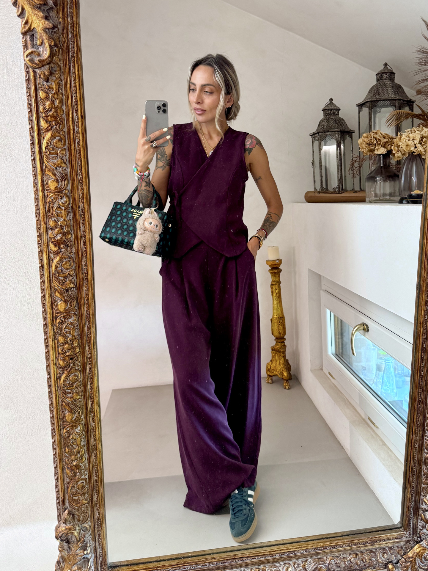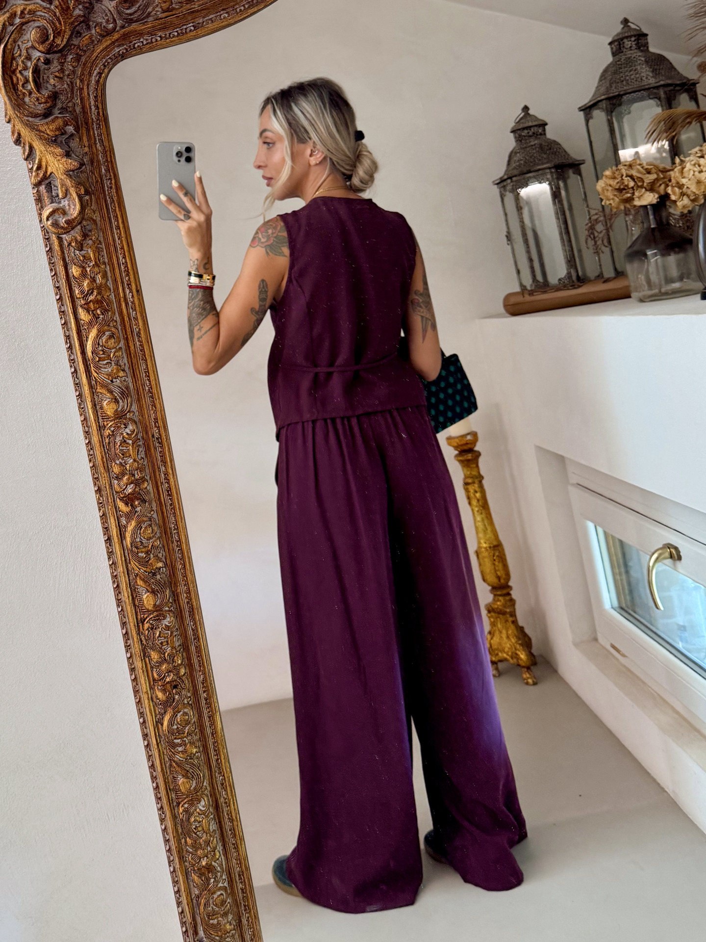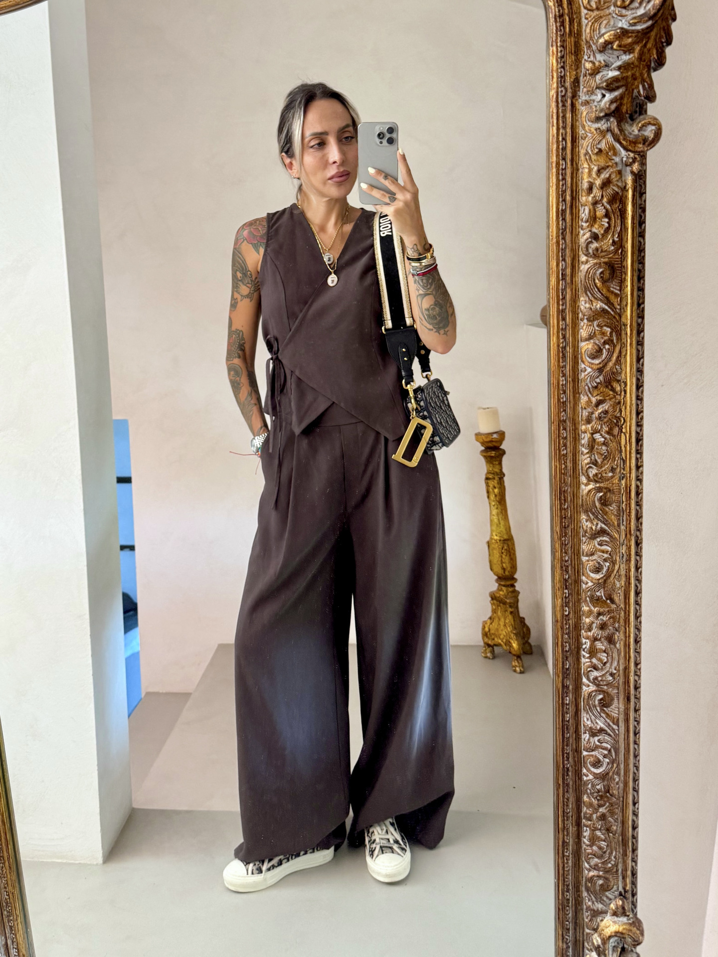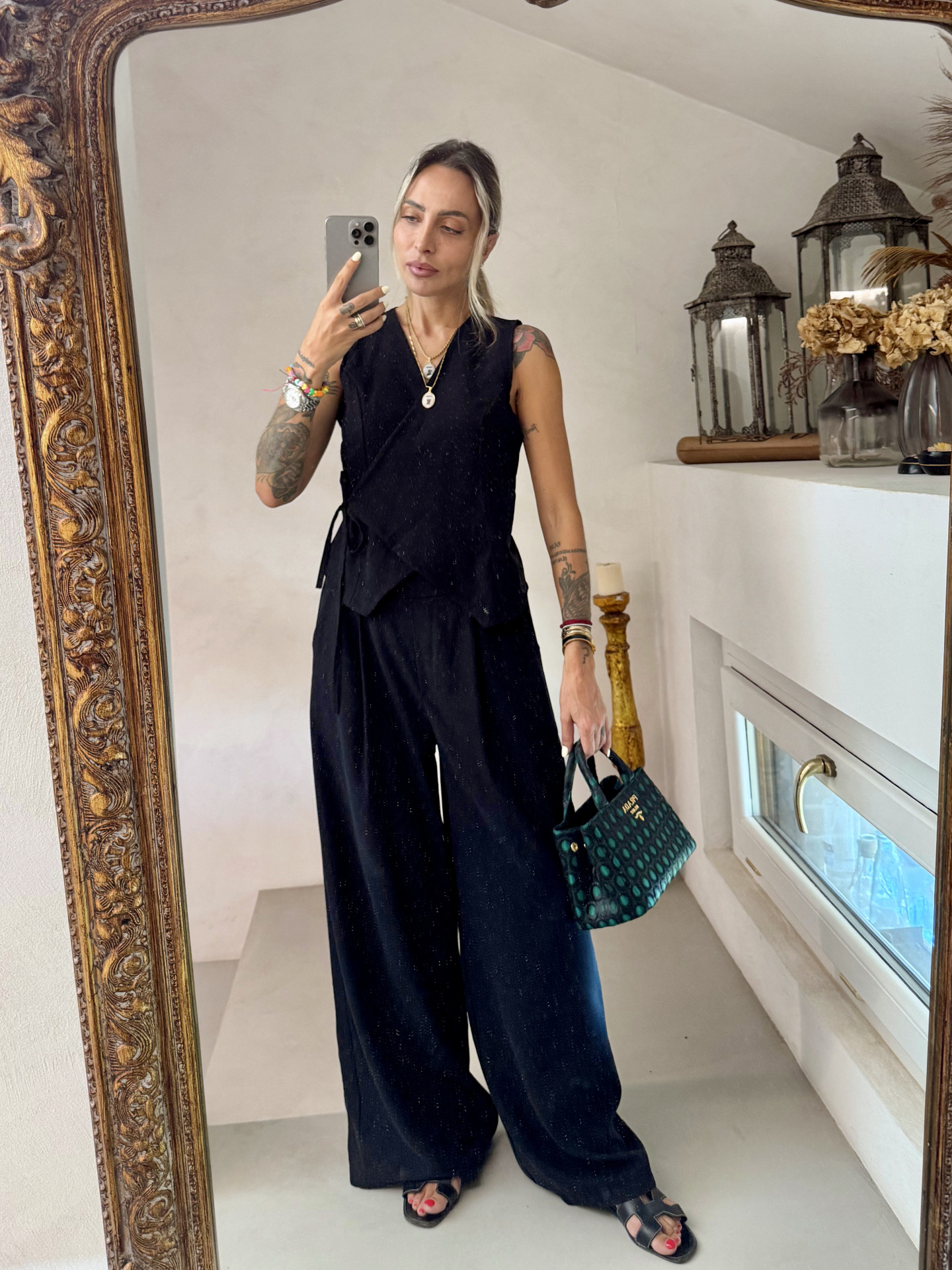 - pantalone ampio con elastico sul retro della vita e tasche laterali