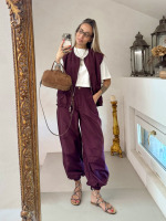 - pantalone a uovo con elastico sul retro della vita, chiusura con zip e bottone, fondo elastico