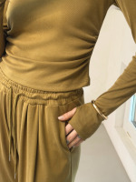 - pantalone con elastico in vita, coulisse e tasche
