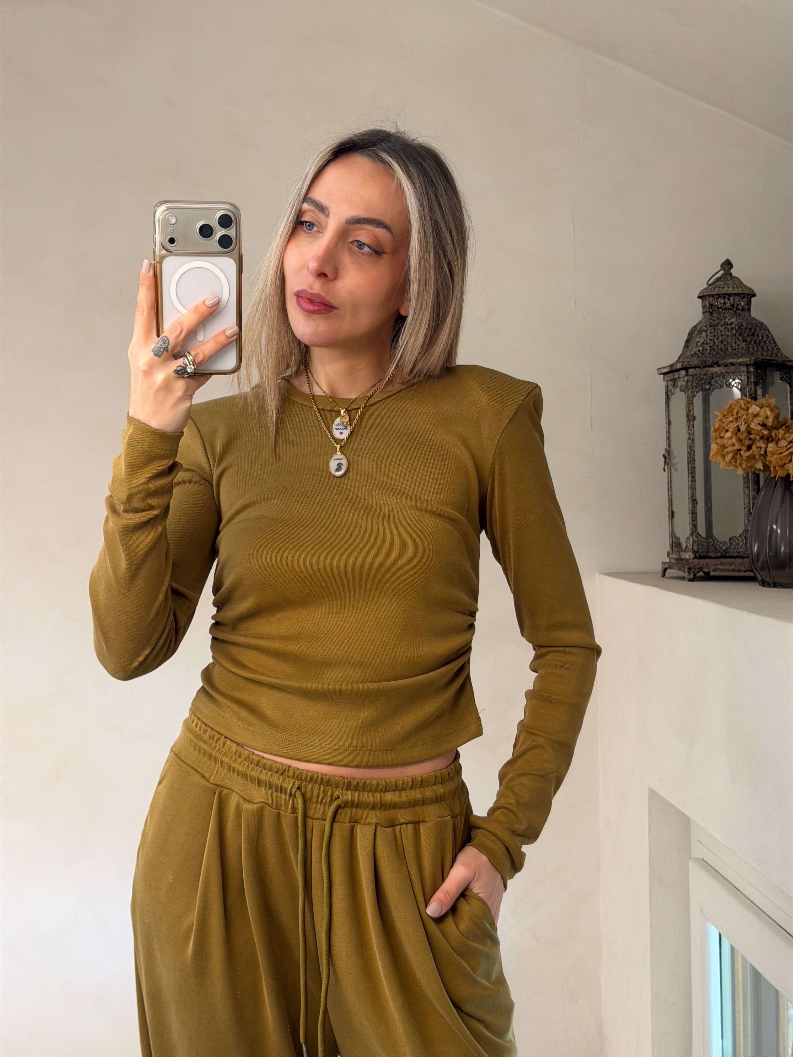 - maglia con drappeggi laterali
