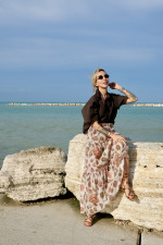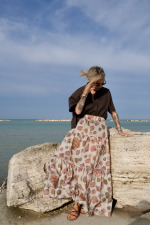 • Tessuto in raso di viscosa, leggero e traspirante, perfetto per climi caldi e giornate al mare