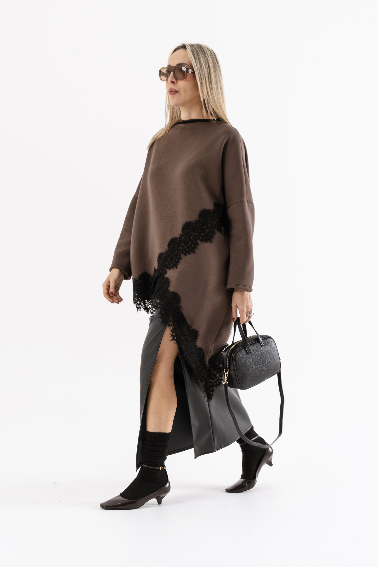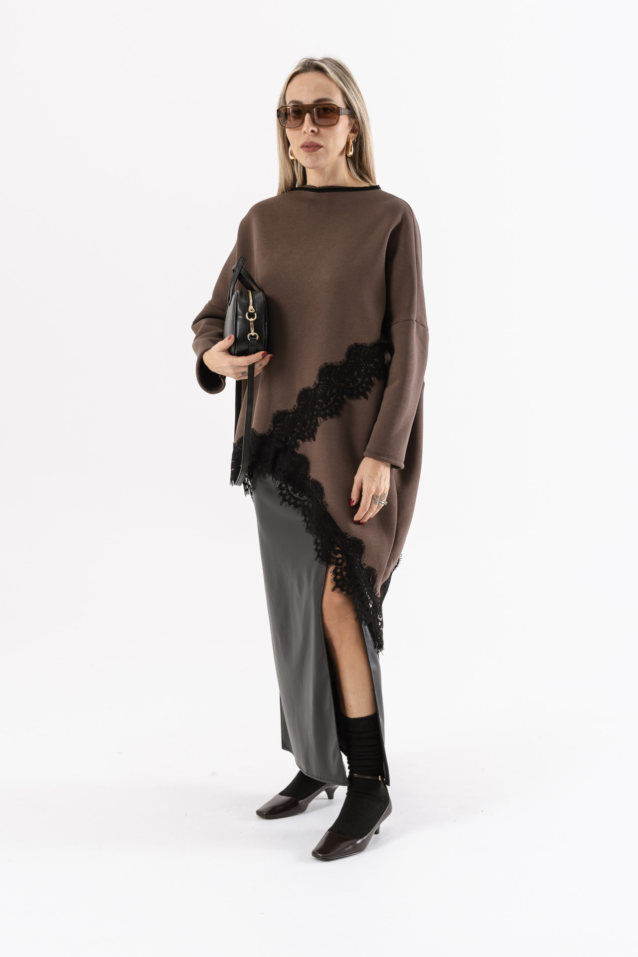 Sole in foto indossa la taglia S (Sole è alta 1.70 e veste la taglia 40), la modella bionda indossa la taglia L (la modella è alta 1.70 e veste la taglia 46).