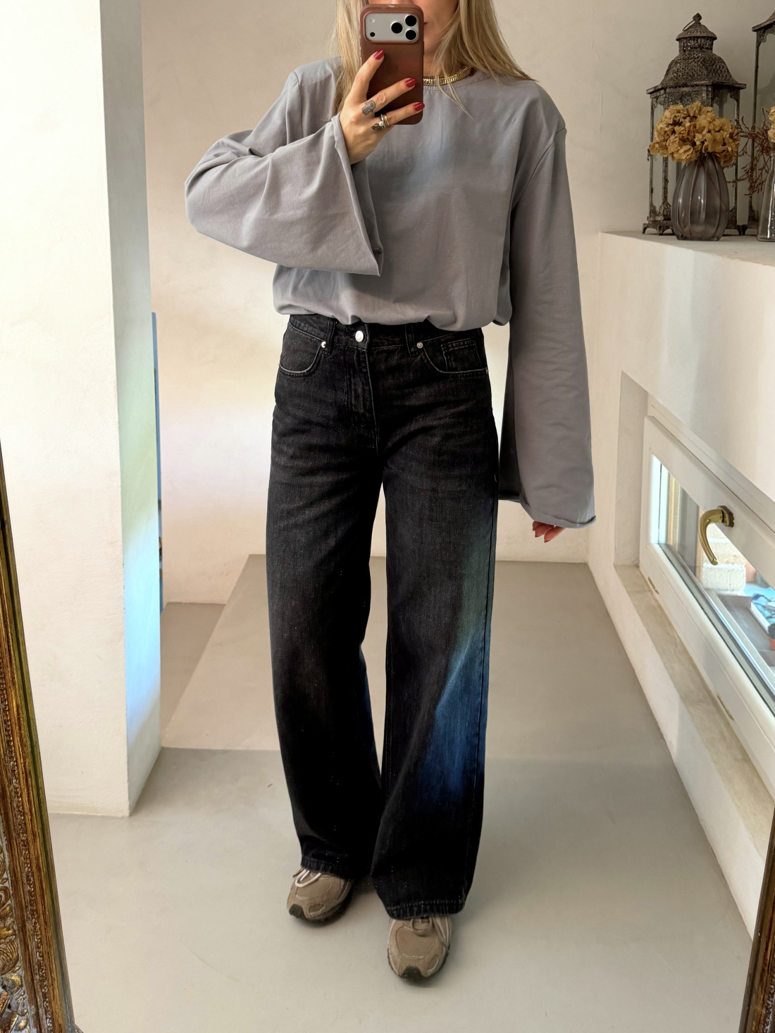 Jeans wide leg grigio scuro