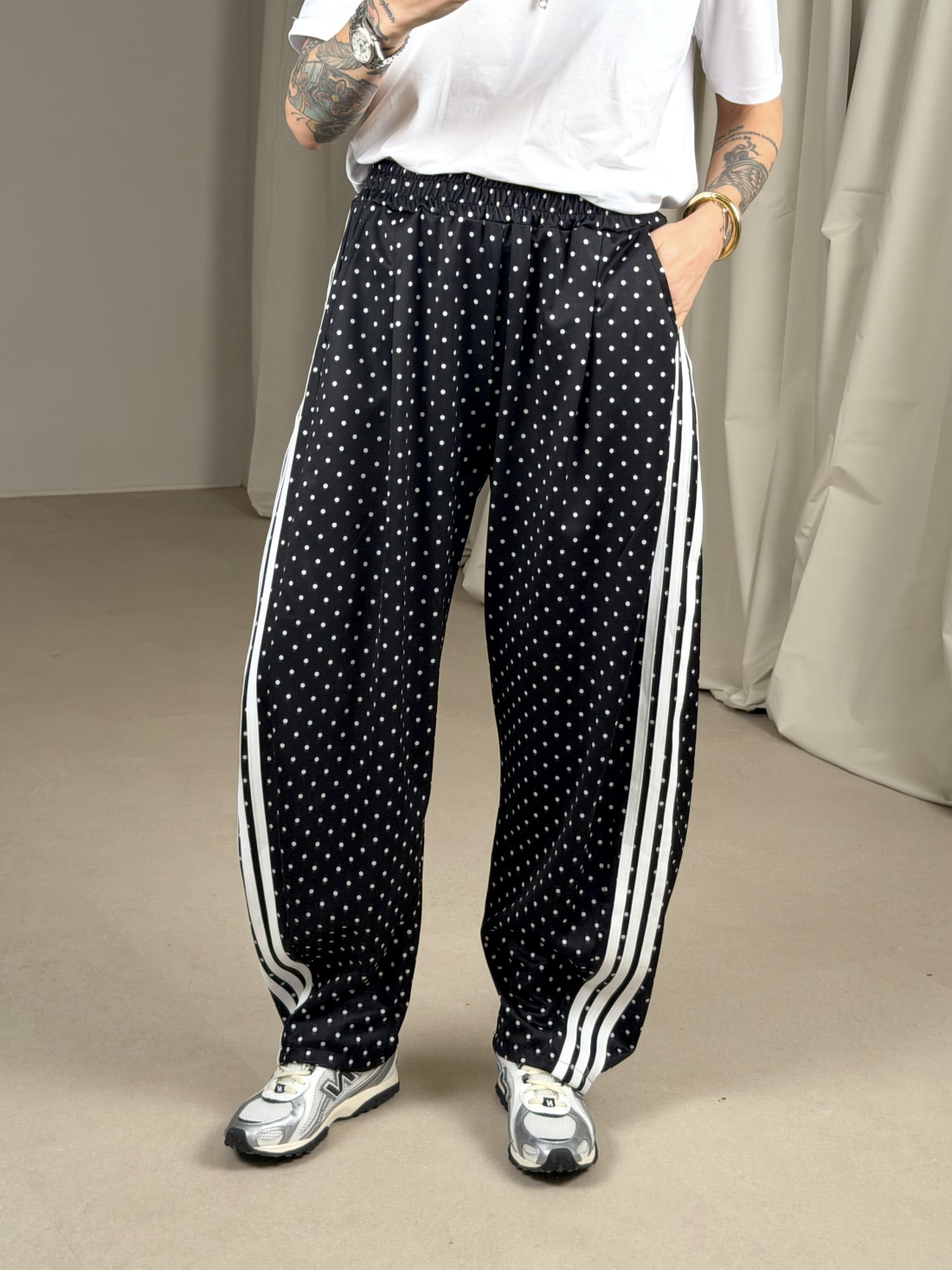 Composizione: 47% viscosa 45% poliestere 8% elastico