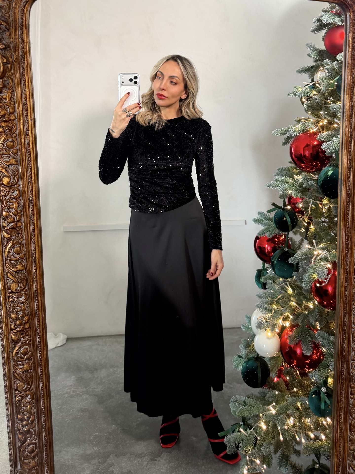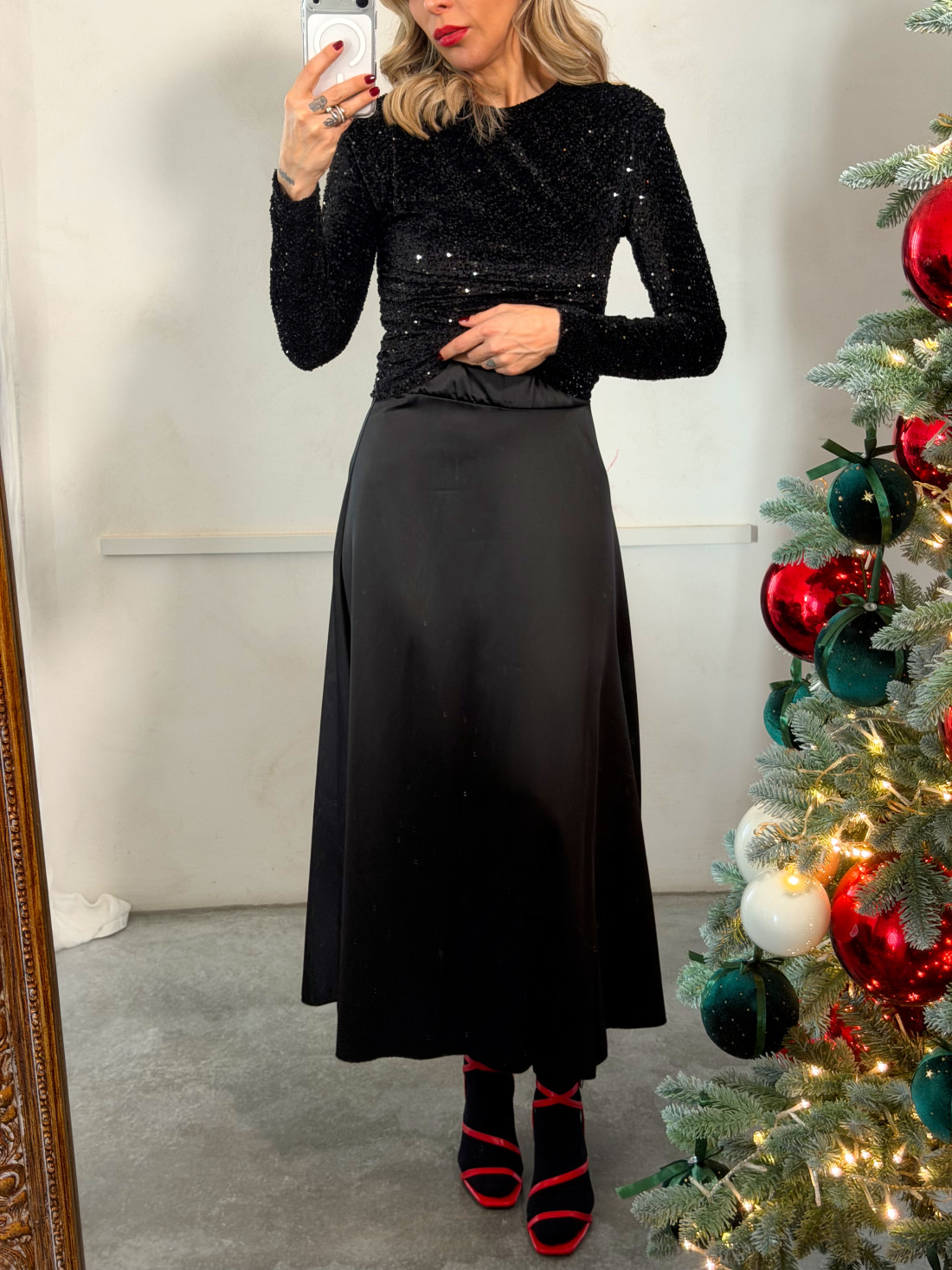 Taglia unica, veste dalla XS alla L (Sole è alta 1,70 e veste la taglia 40).