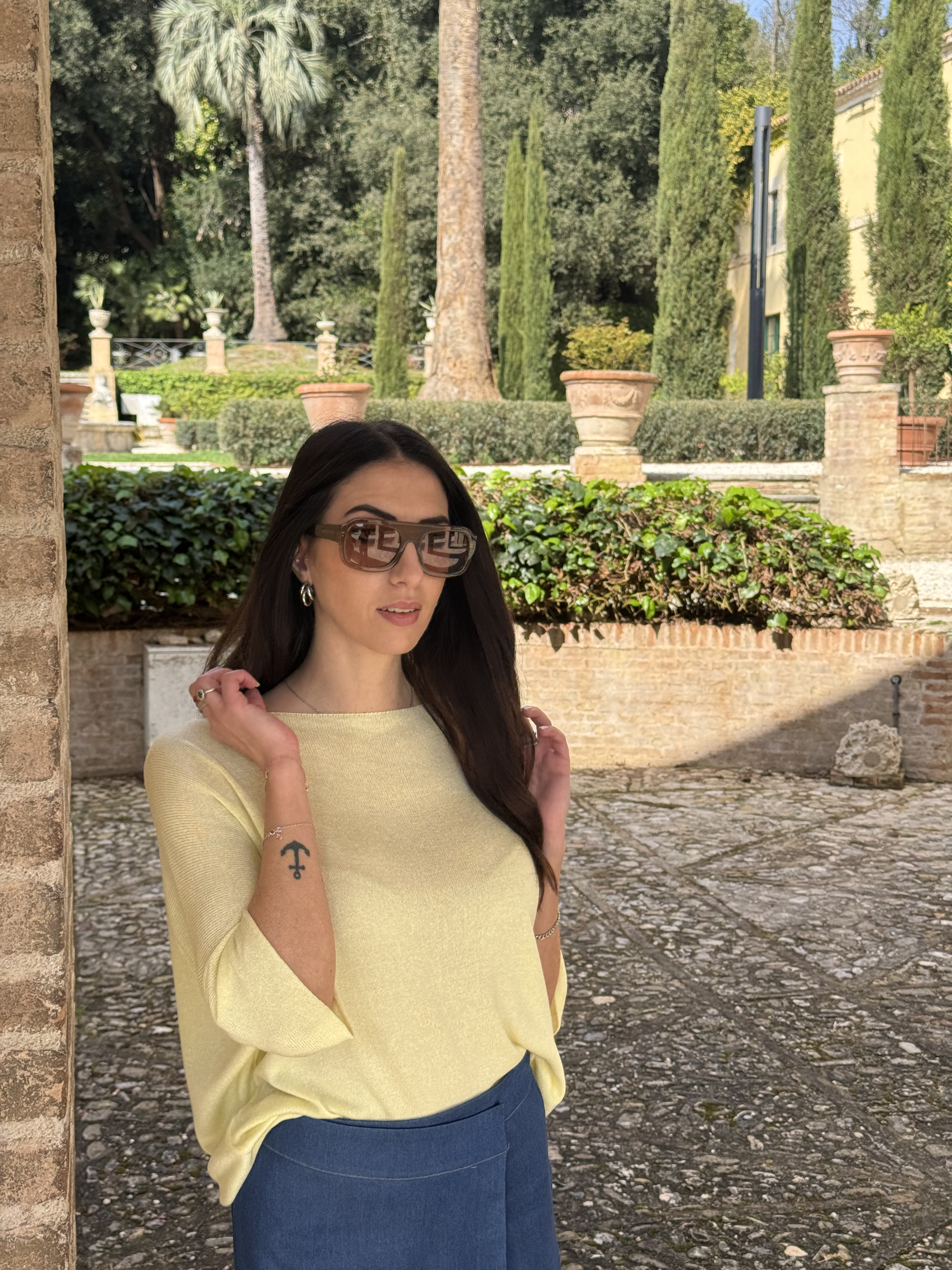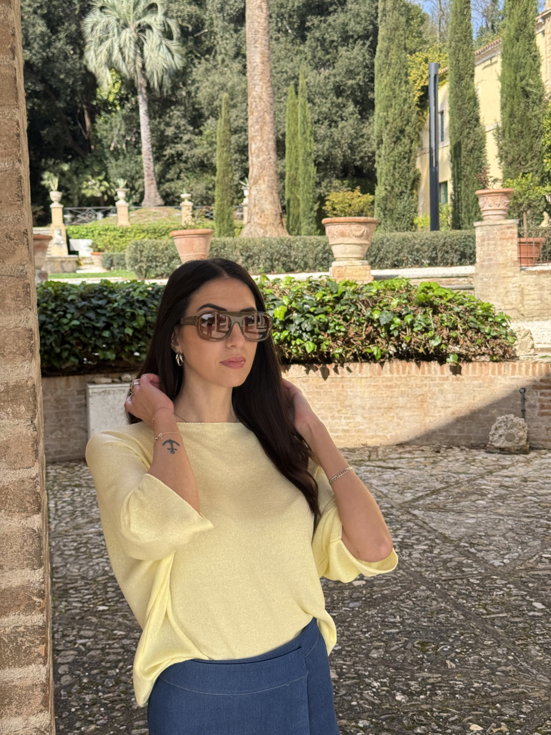 Perfetta per le giornate più rilassate, questa maglia aggiunge un tocco di eleganza informale al tuo guardaroba, mantenendo un’aria sofisticata e moderna.