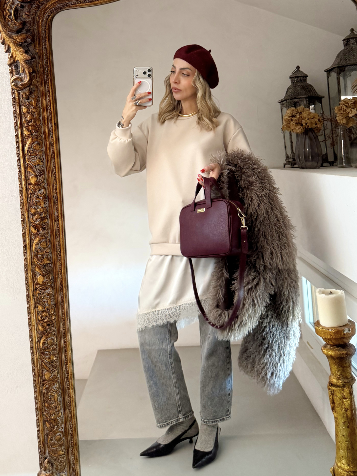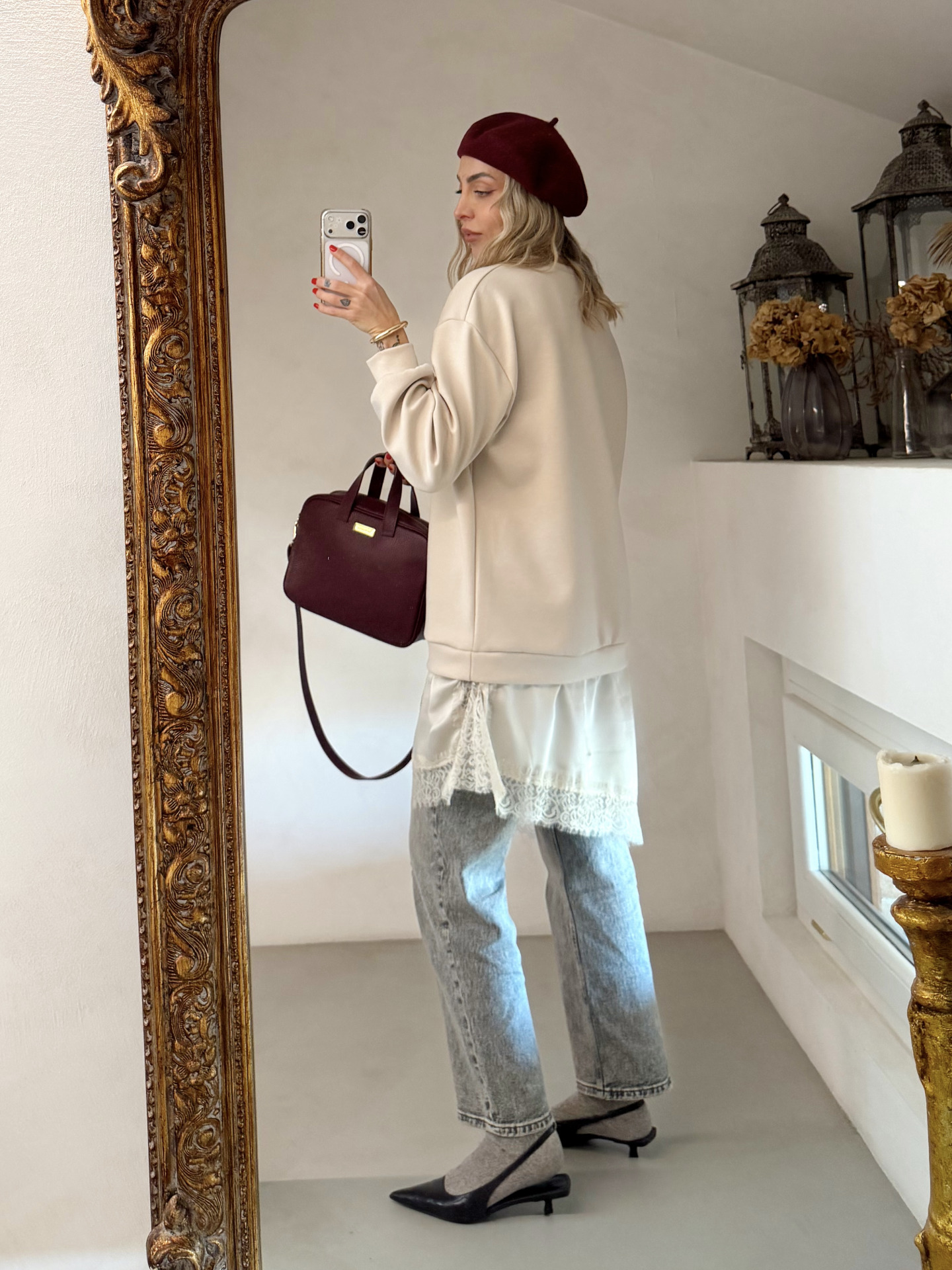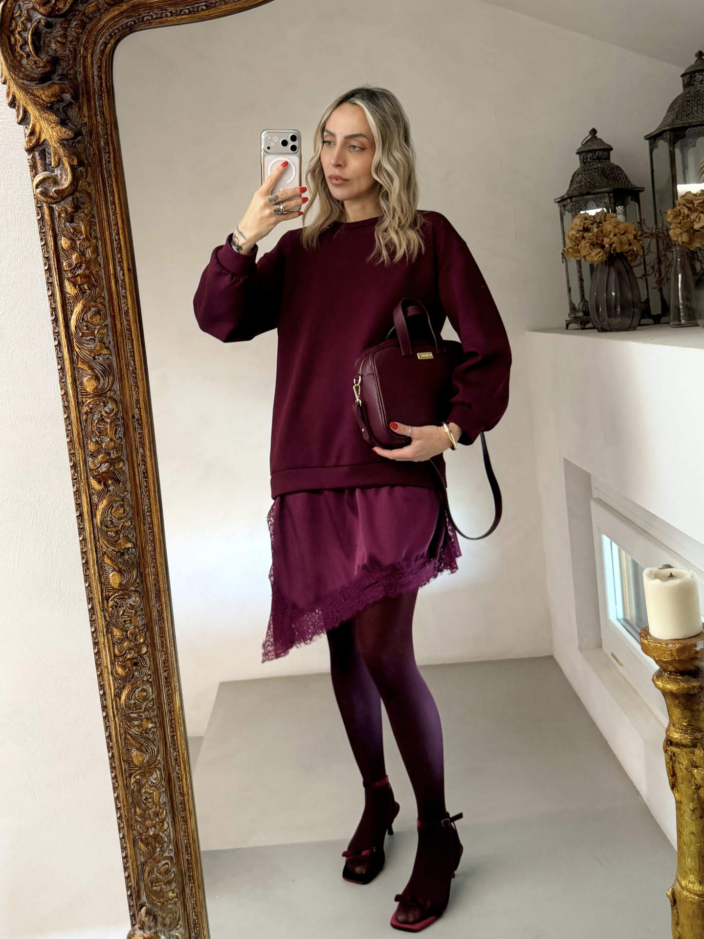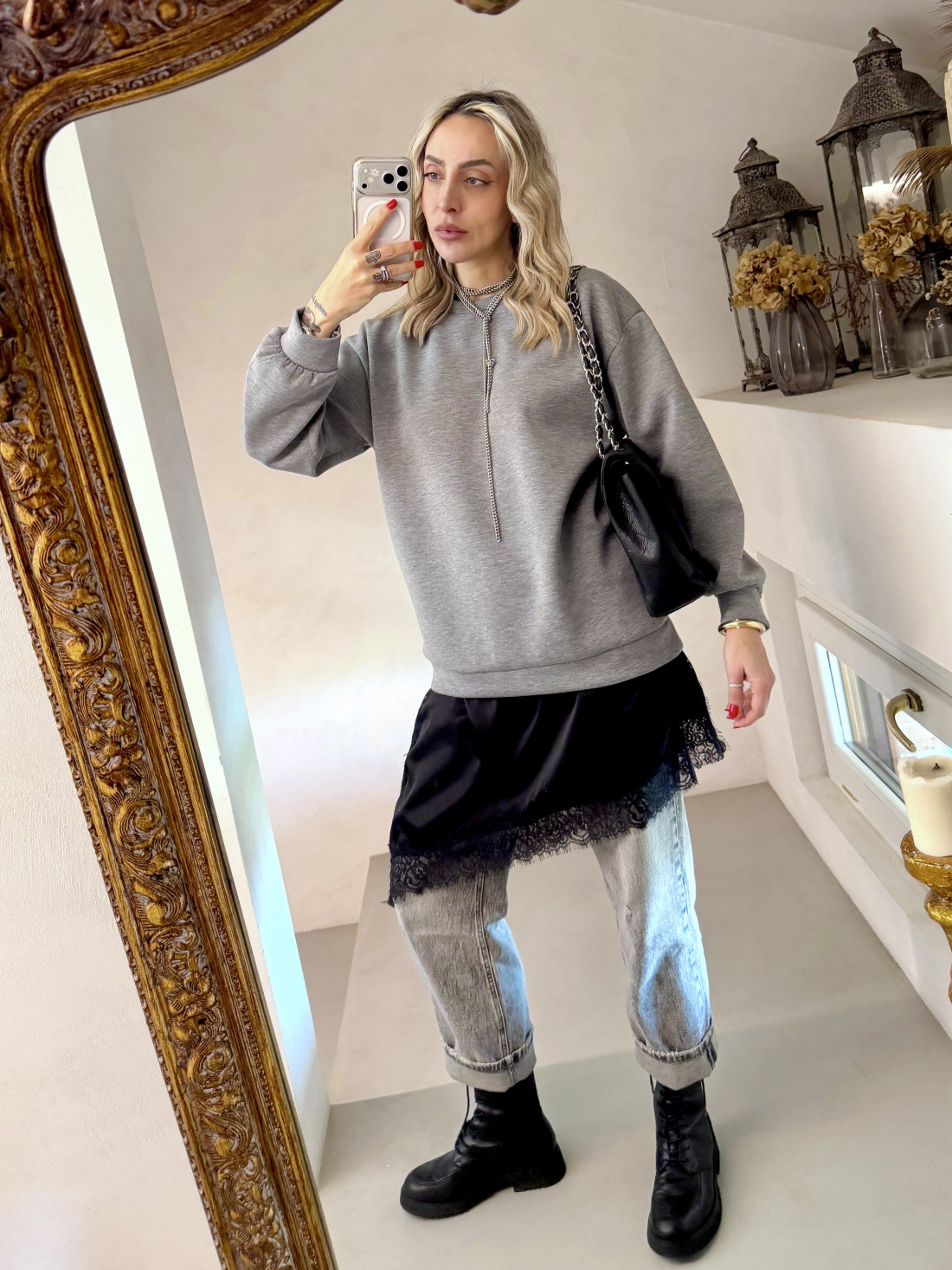• dettaglio sottoveste in raso con inserti in pizzo