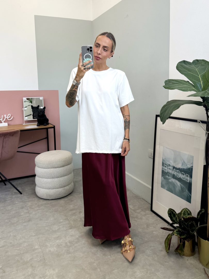 Taglia unica, veste da XS a L/XL (la ragazza in foto è alta 1.70 e veste la taglia 40).