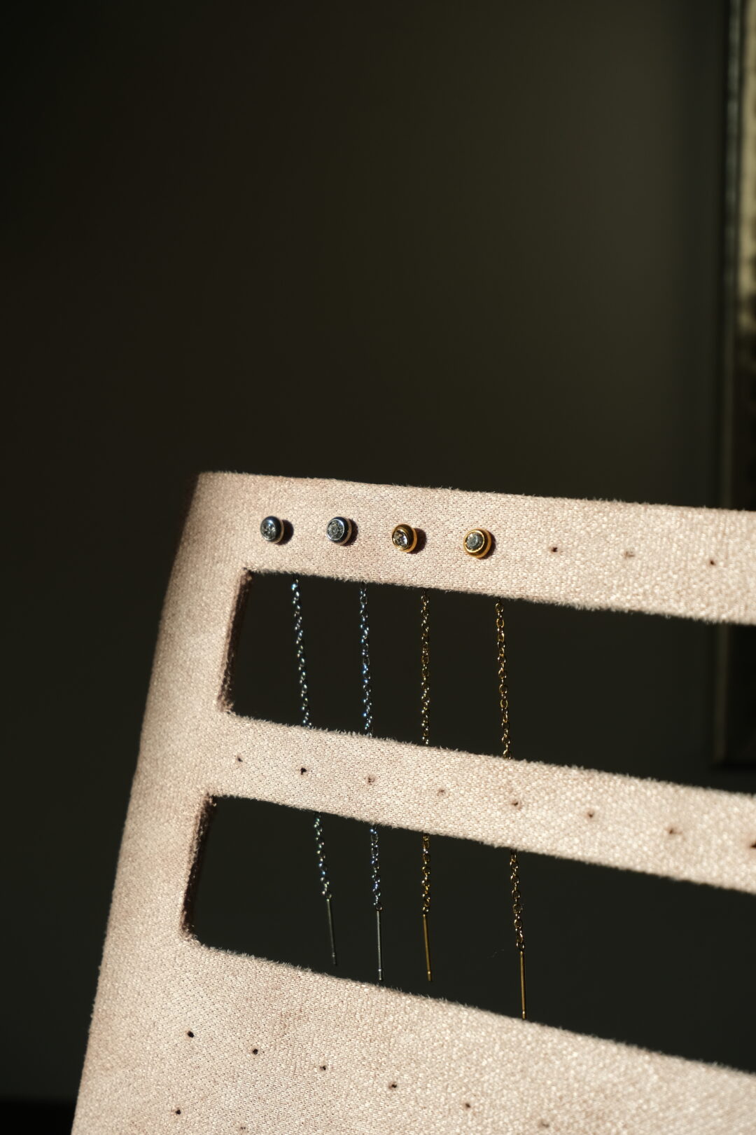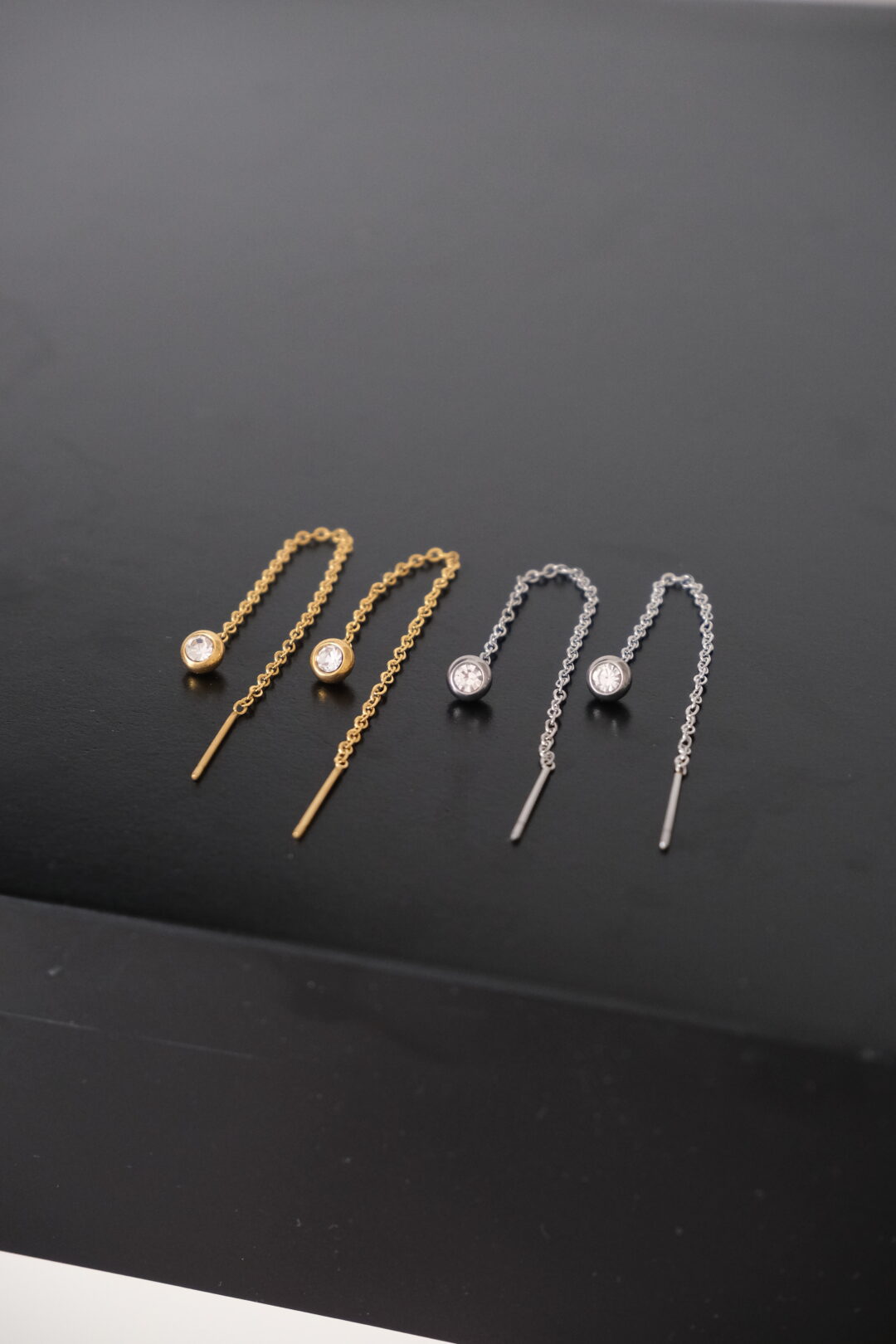 Orecchino in catena sottile con punto luce.