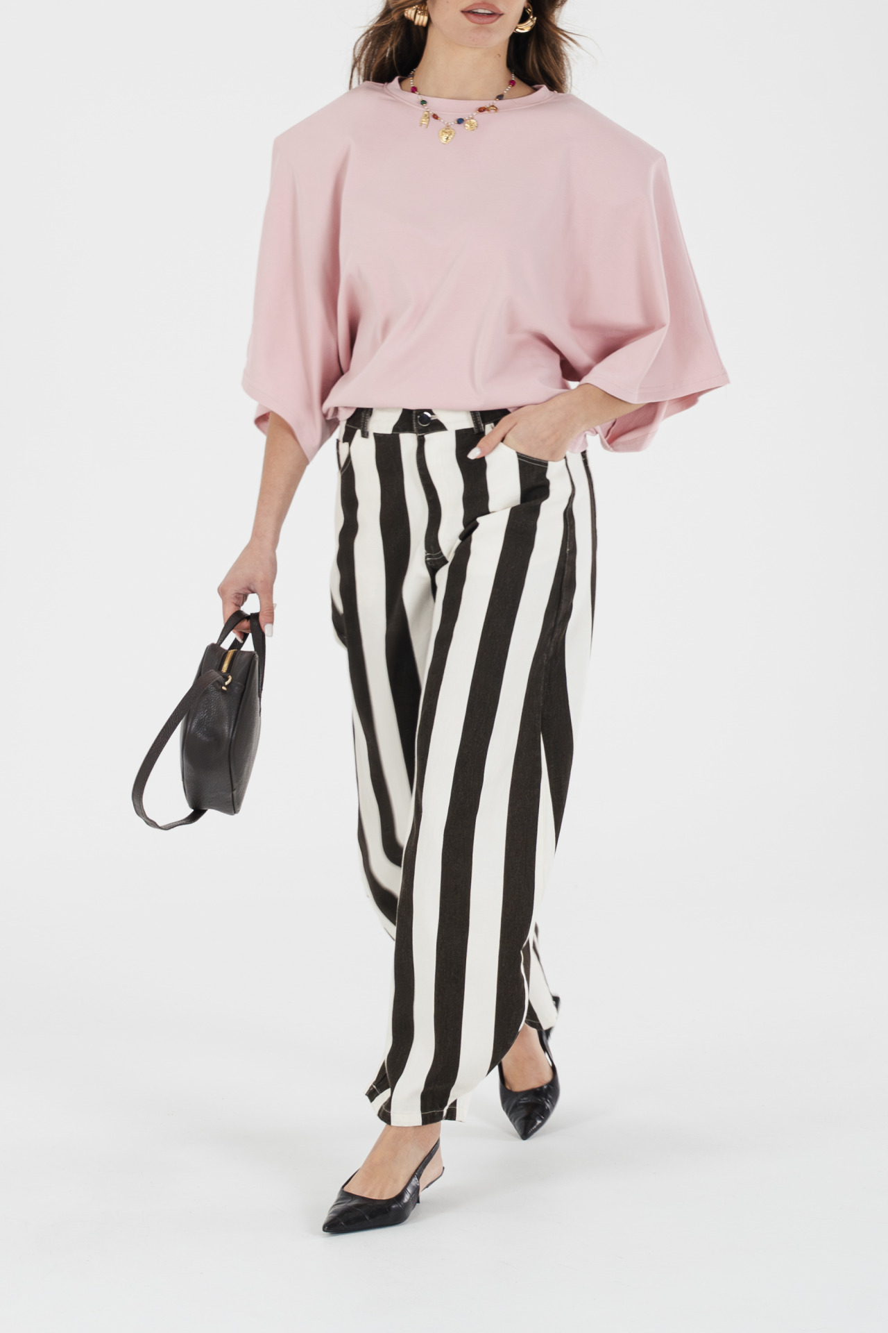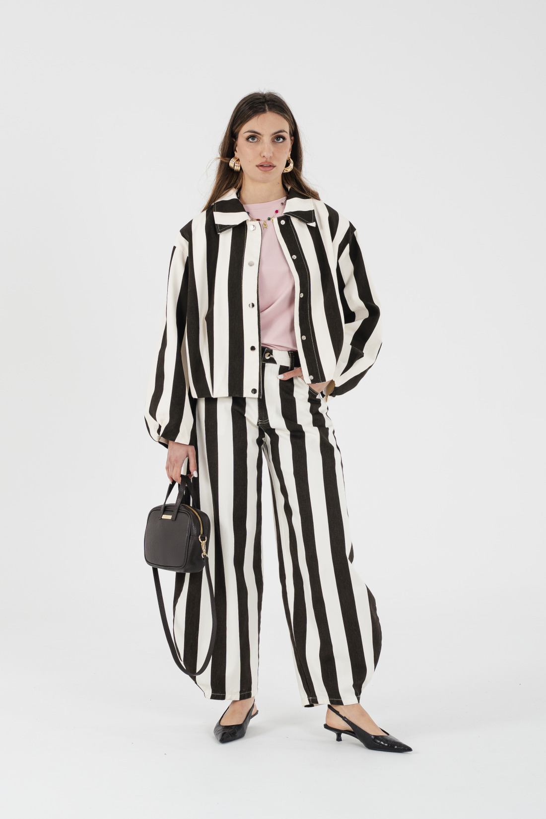 In foto indossata la taglia S (la modella è alta 1,70 e veste la taglia 40)