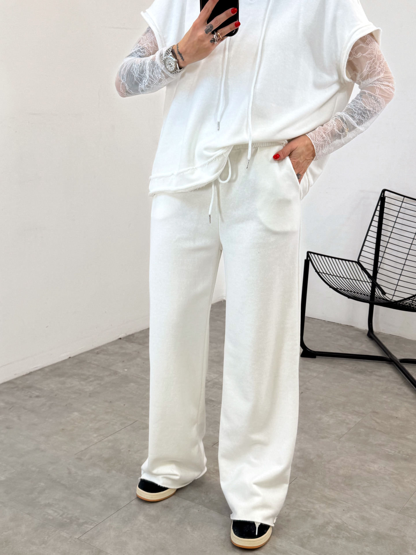 Comfort e stile si incontrano nel nostro pantalone in felpa a gamba dritta, perfetto per un look casual e rilassato.