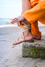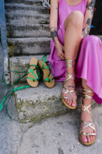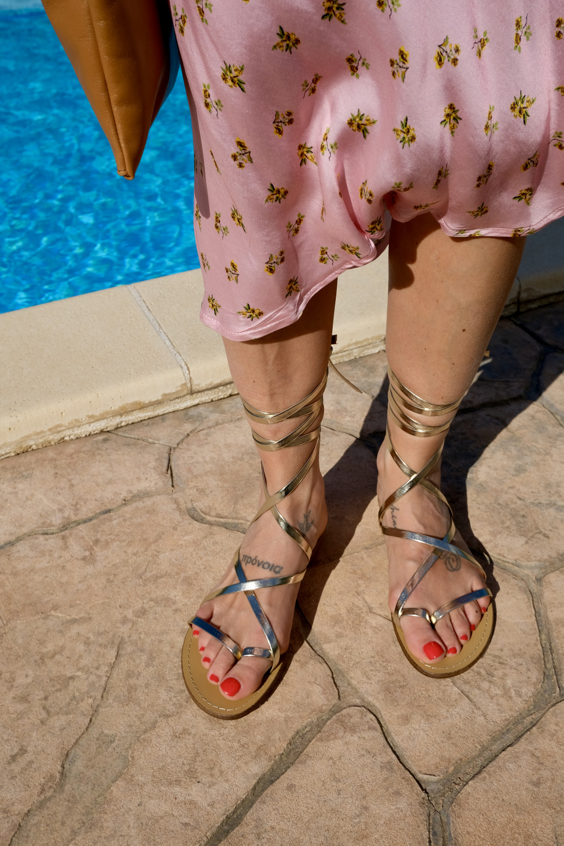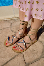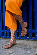 Esalta la tua estate con il nostro sandalo artigianale in pelle e cuoio, 100% Made in Italy. Realizzato con materiali di alta qualità, questo modello presenta sottili cinturini in pelleche si intrecciano elegantemente sul piede, garantendo un look raffinato e femminile. La suola in cuoio naturale offre comfort e resistenza, perfetta per accompagnarti con stile durante le giornate più calde.