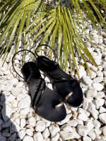 Esalta la tua estate con il nostro sandalo artigianale in pelle e cuoio, 100% Made in Italy. Realizzato con materiali di alta qualità, questo modello presenta sottili cinturini in pelle che si intrecciano elegantemente sul piede, garantendo un look raffinato e femminile. La suola in cuoio naturale offre comfort e resistenza, perfetta per accompagnarti con stile durante le giornate più calde.