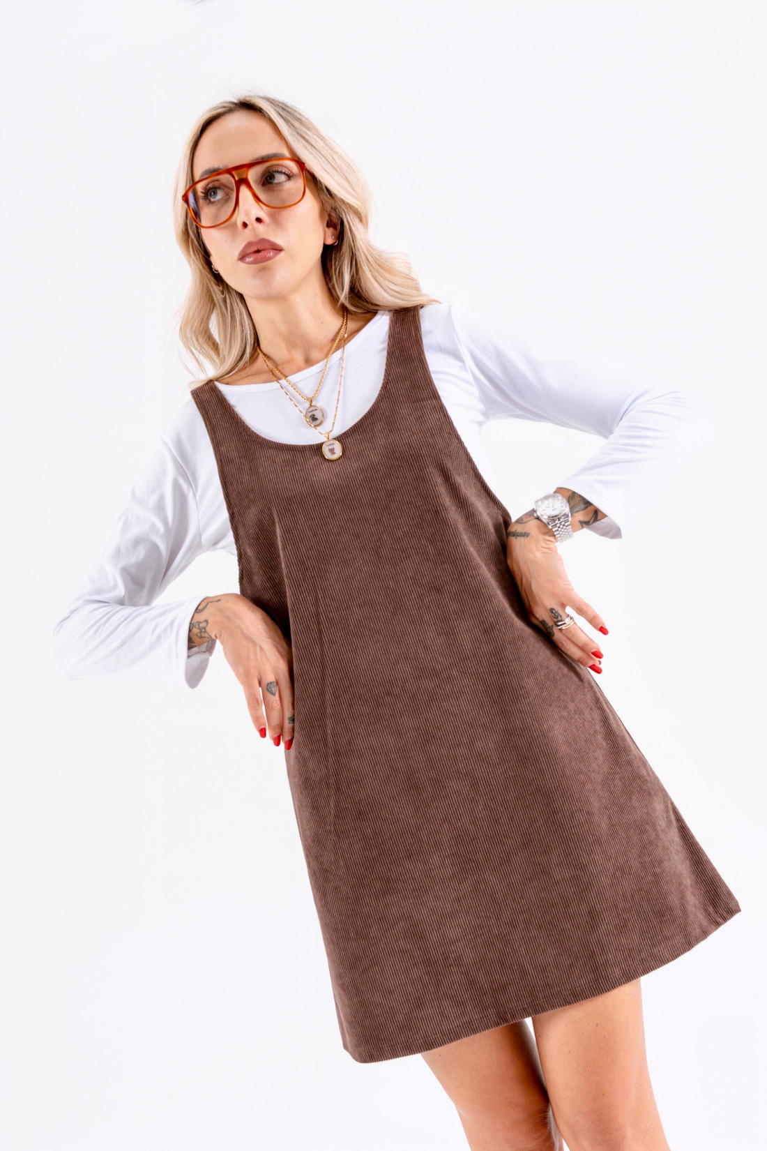 - abito in tessuto a costine con bretelle