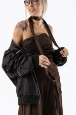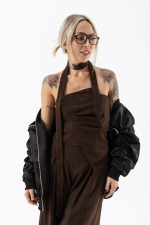 - corpetto con asimmetrico con bottoni e drappeggio, elastico sulla schien