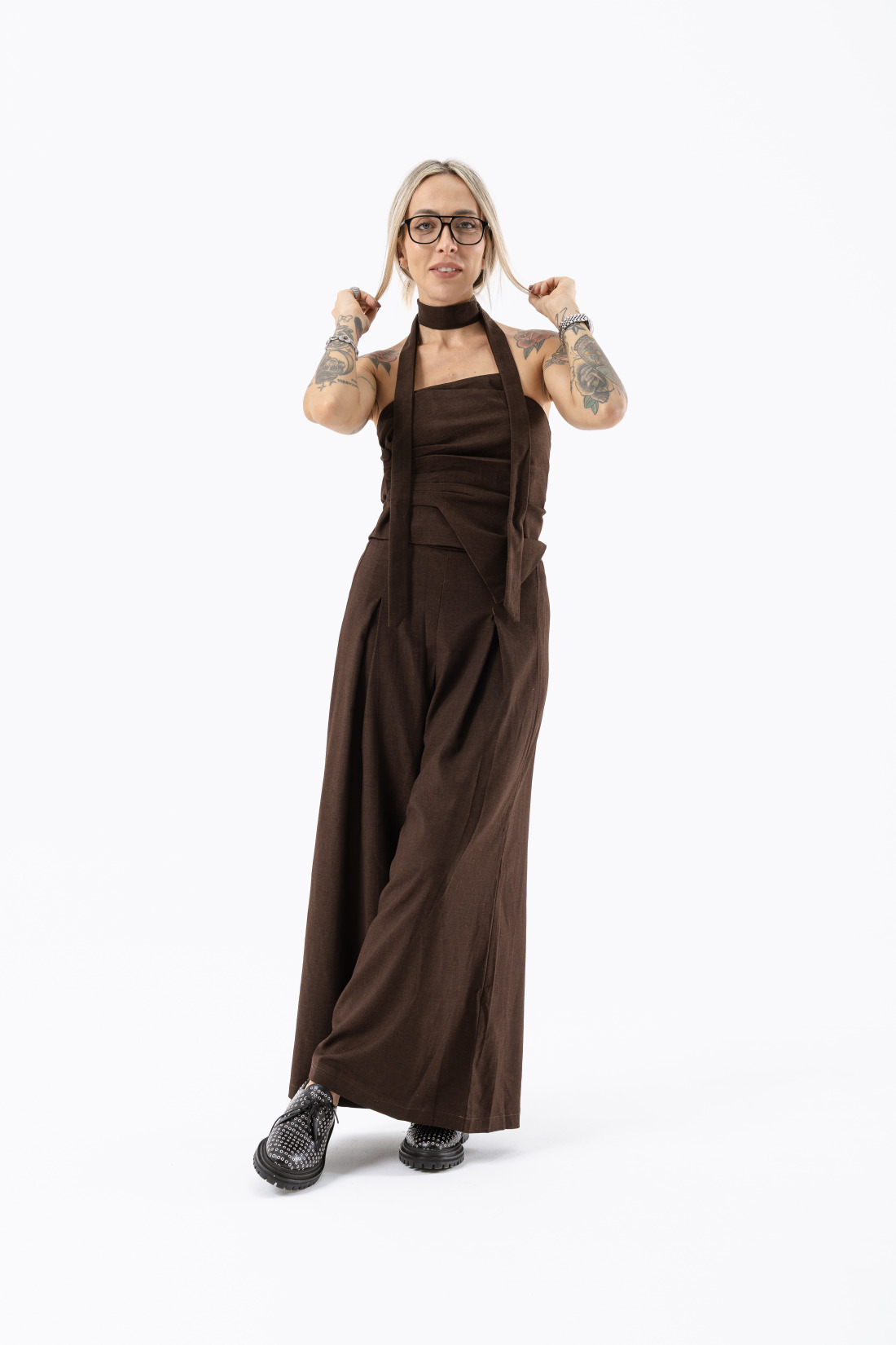 - pantalone ampio con elastico in vita, fodera a pantaloncino