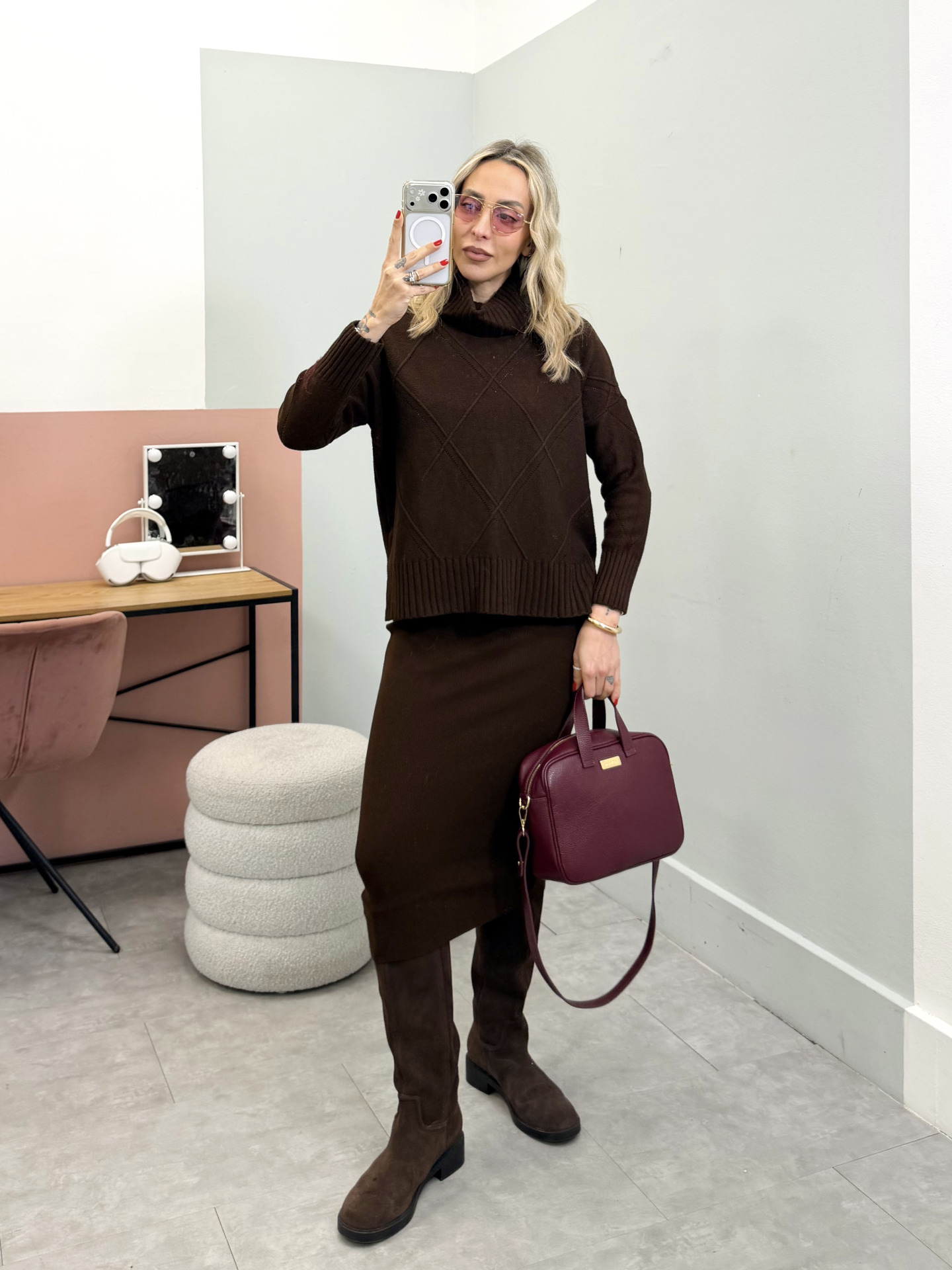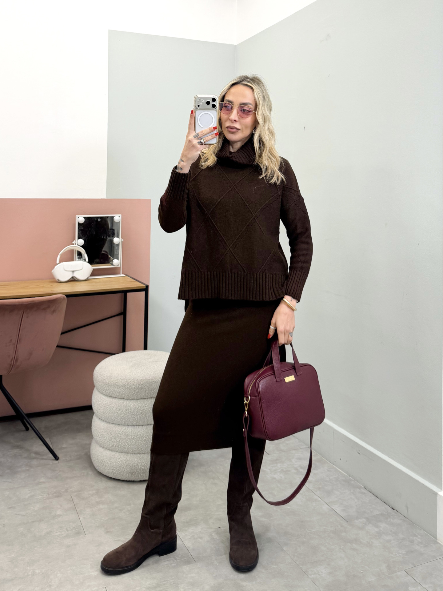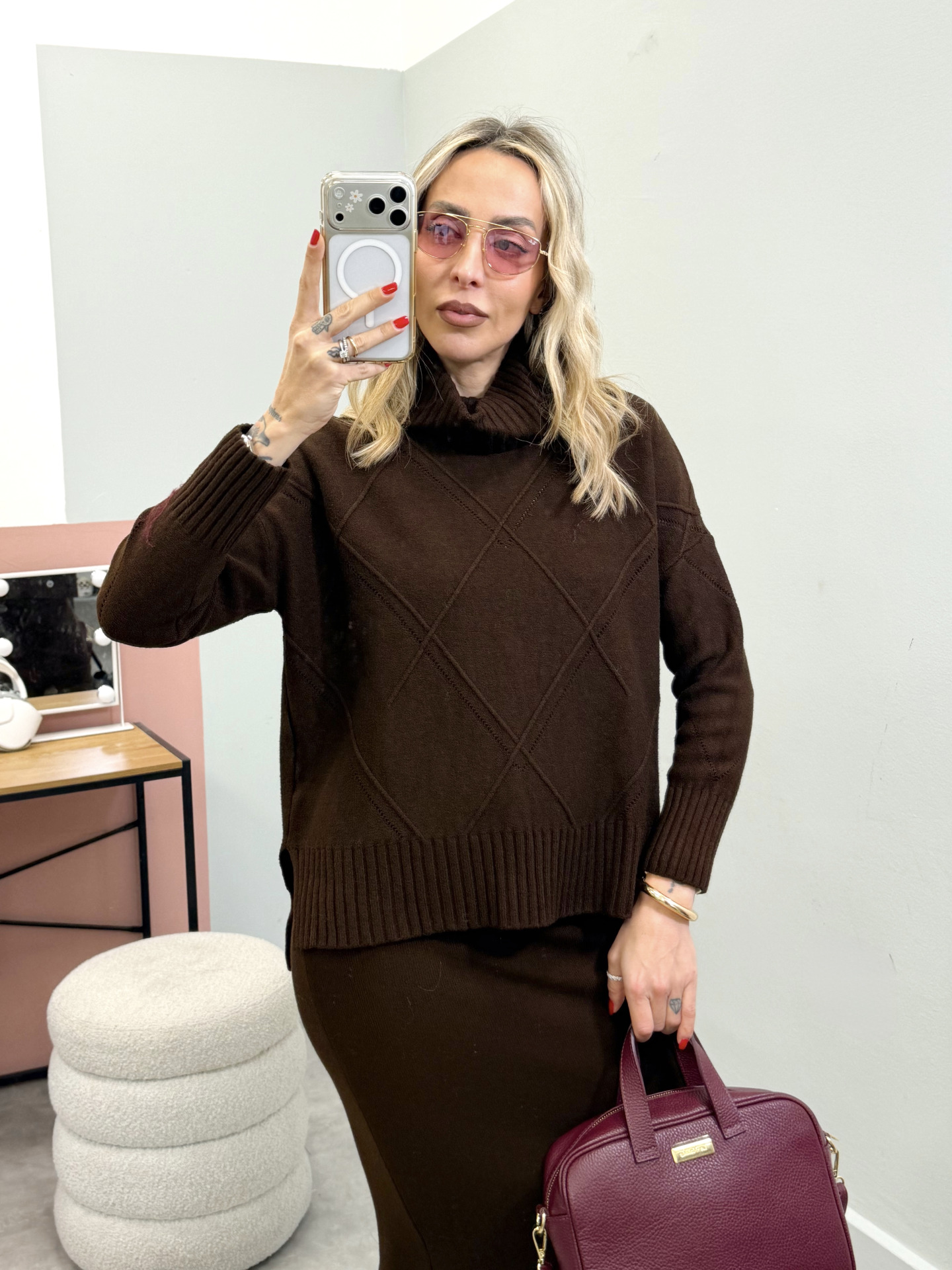 - maglia ampia collo alto lavorato a rombi
