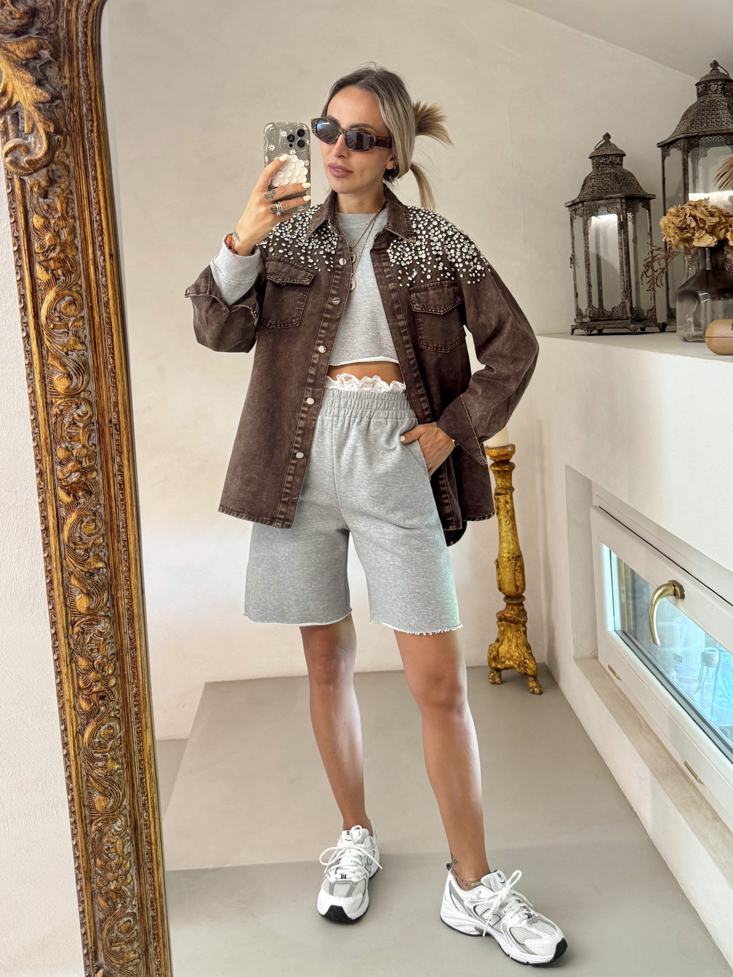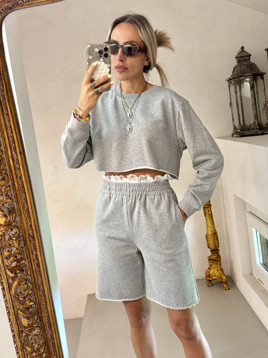 - bermuda con dettaglio in pizzo in vita, girovita elastico e tasche