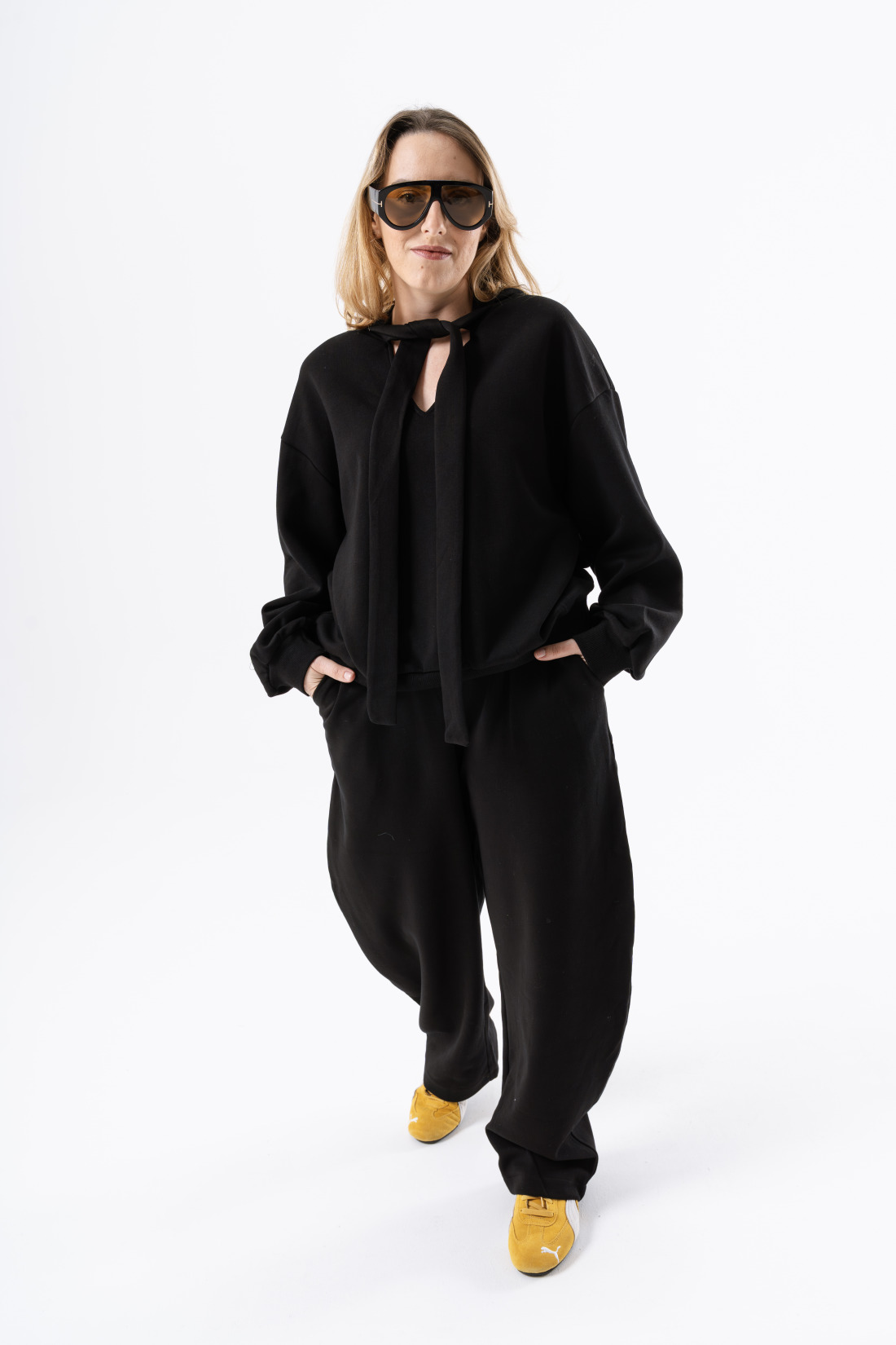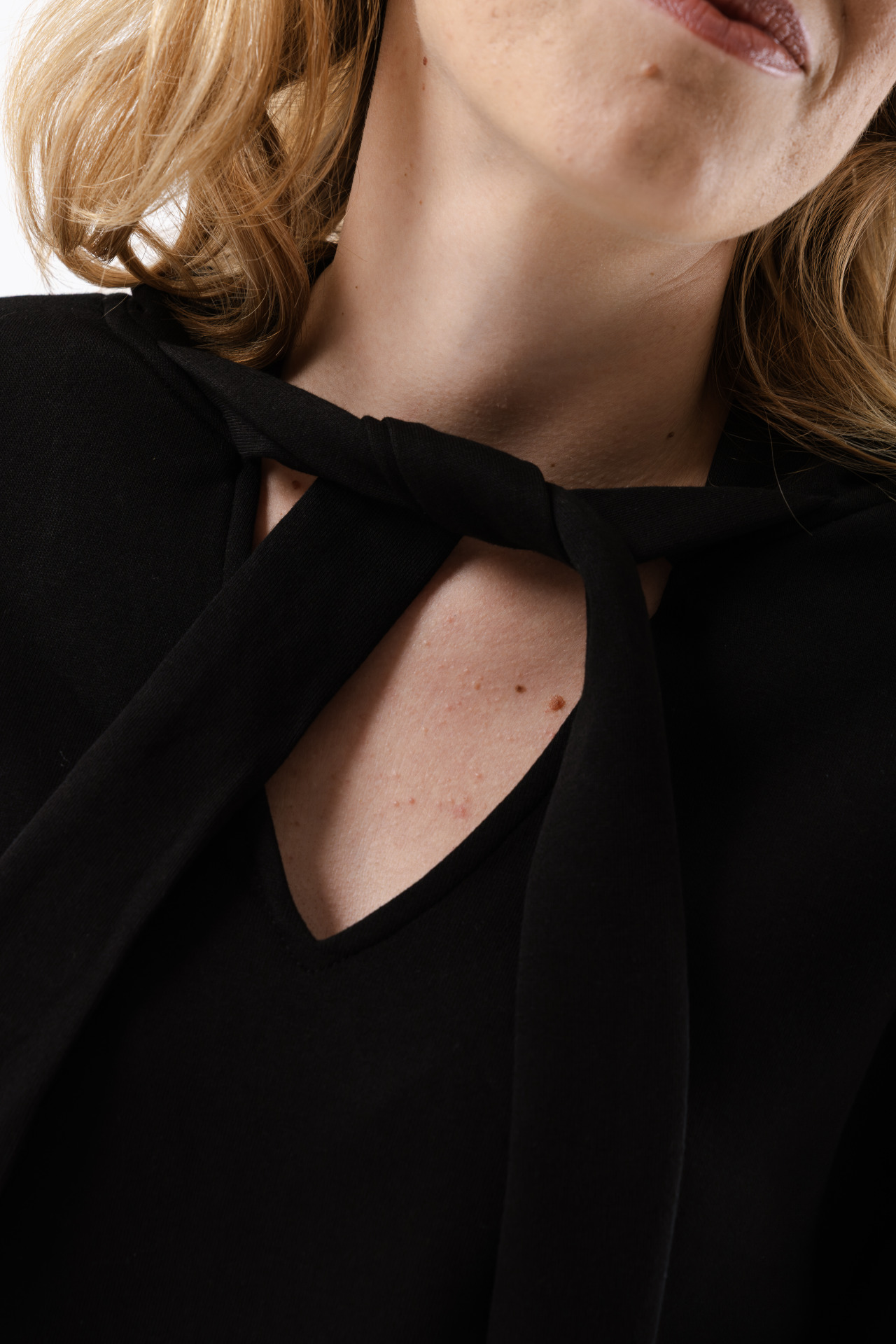In foto la modella mora e Sole indossano taglia S/M (la modella mora è alta 1.75 e veste la taglia 40, Sole è alta 1.70 e veste la taglia 40).