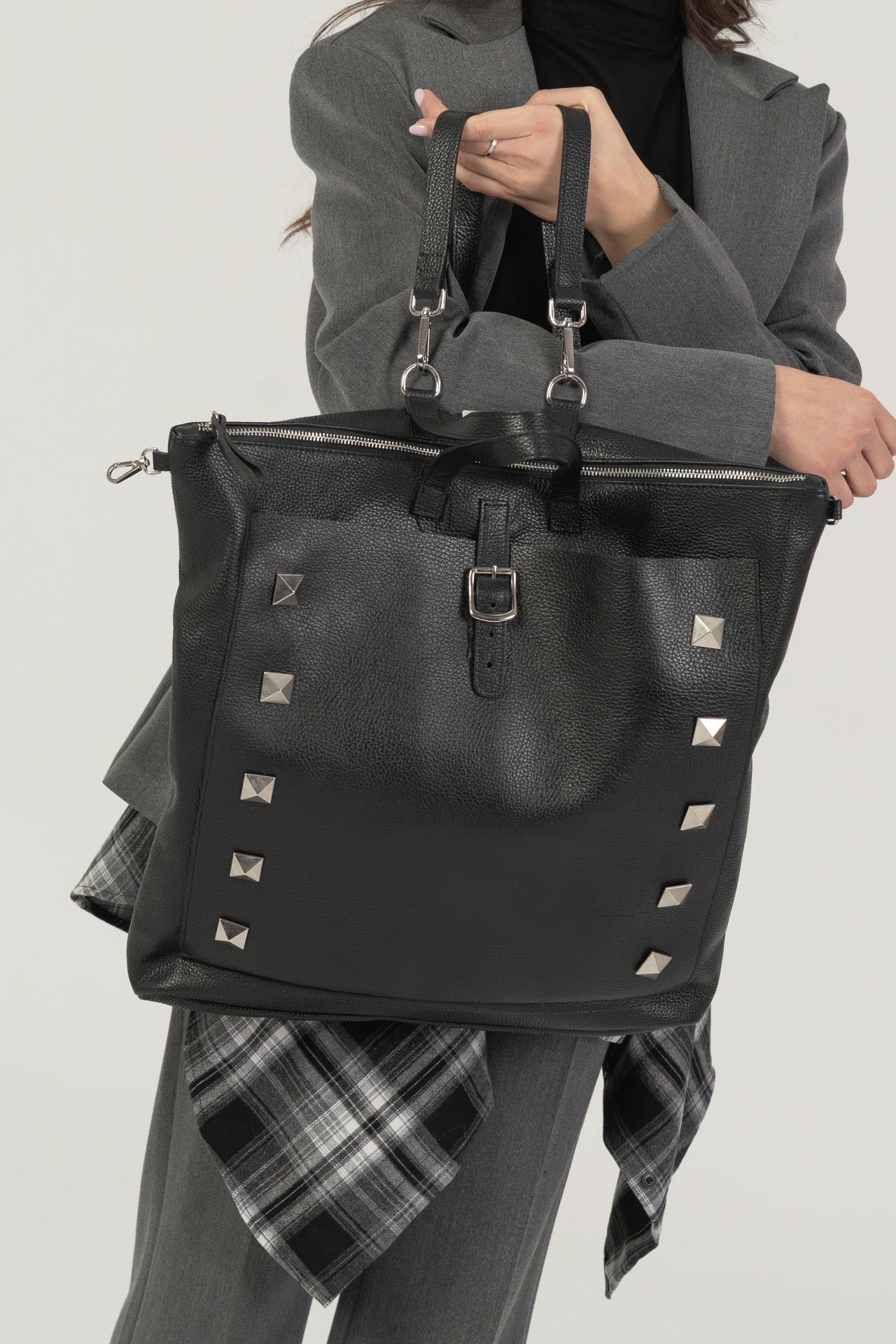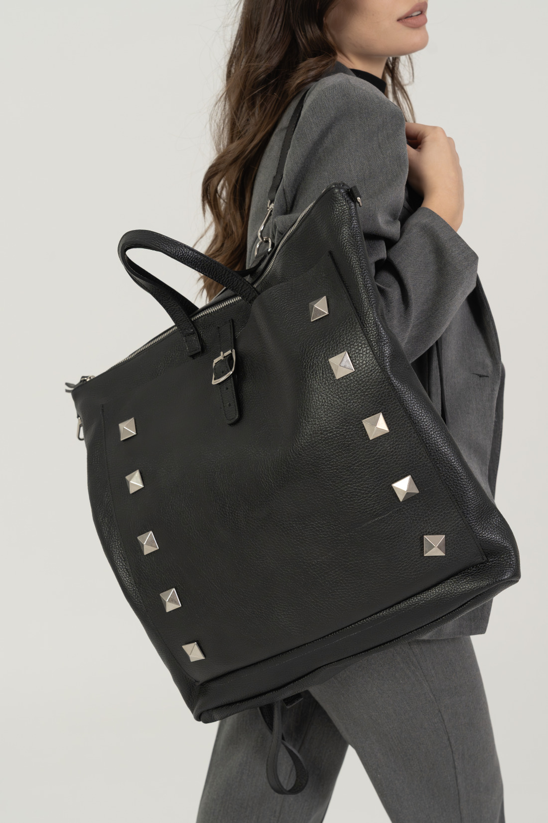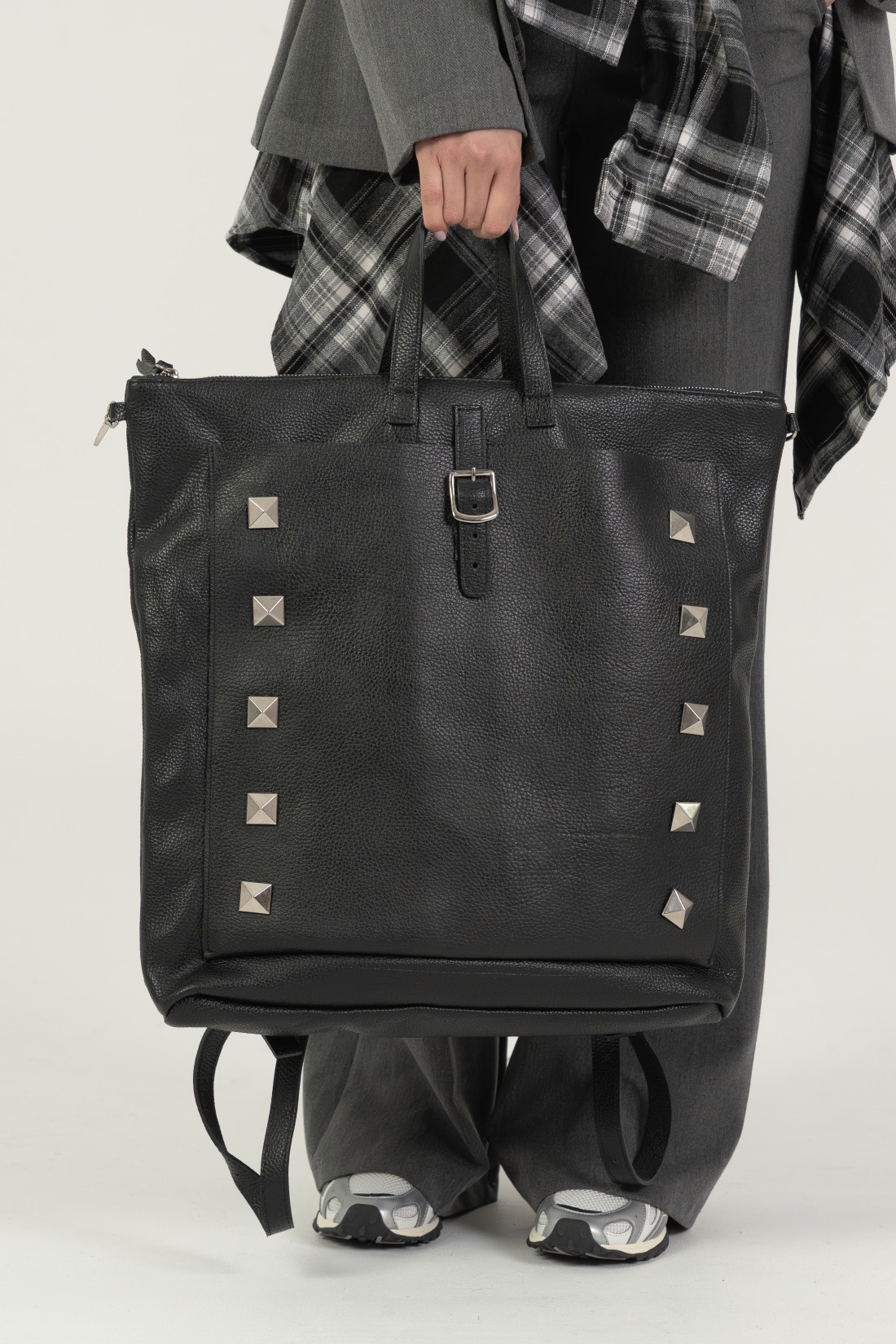 Borchie a piramide argento sui lati.