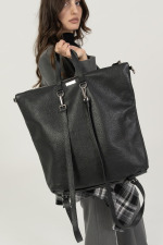 Borsa in vera pelle nera con tasca esterna.