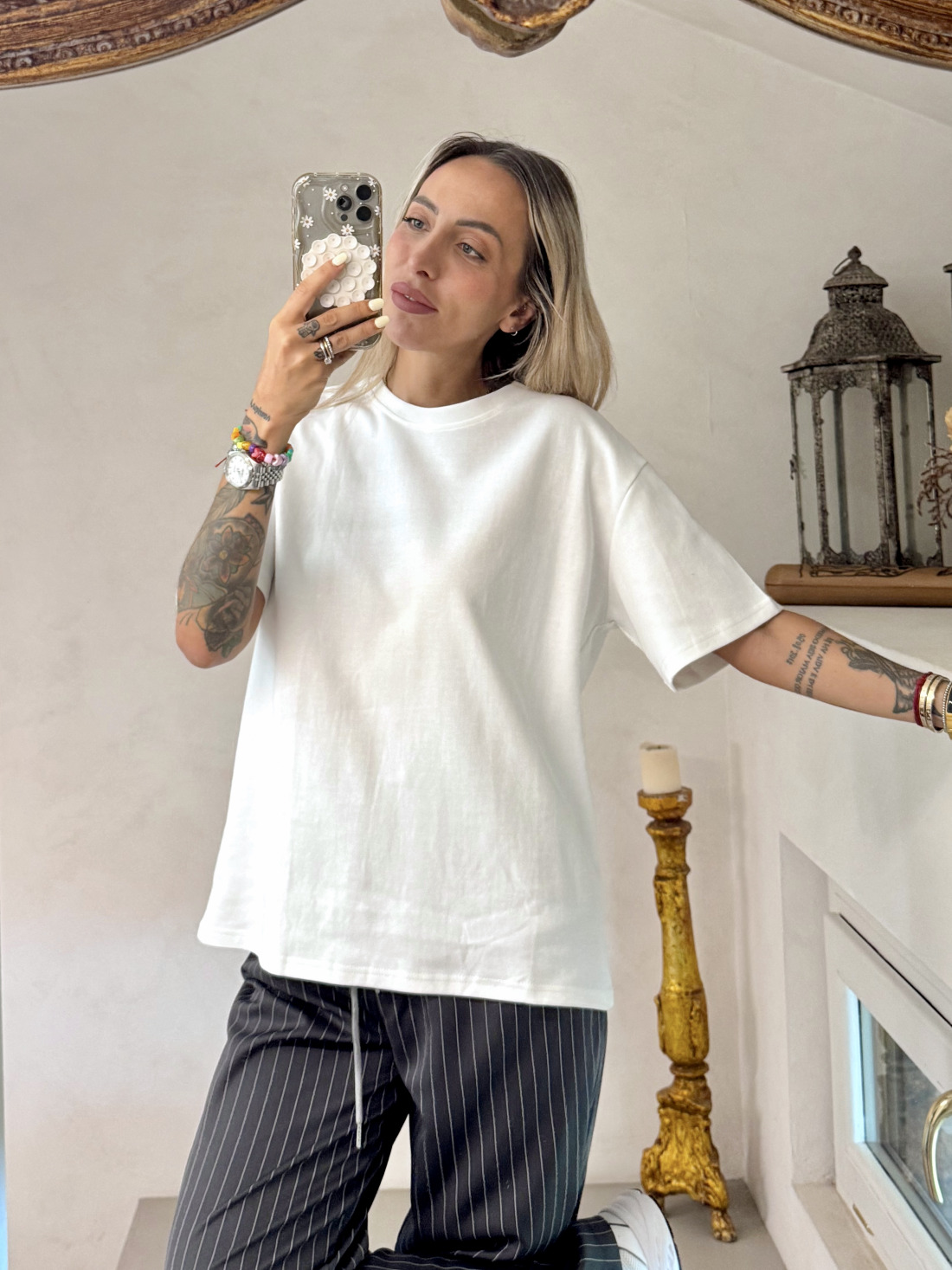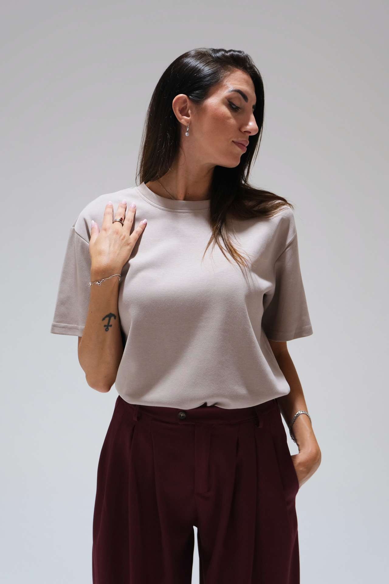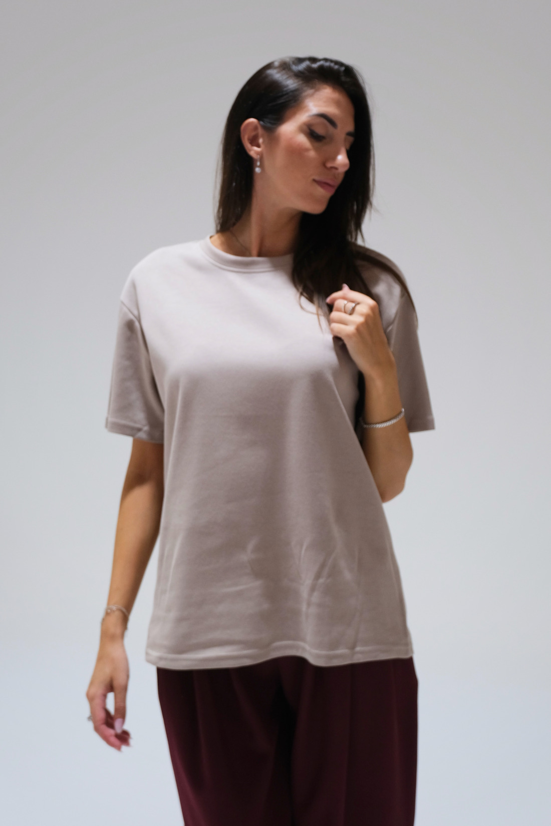 Taglia unica, veste da XS a L (la modella mora è alta 1.75 e veste la taglia 40, Sole in foto è alta 1.70 e veste la taglia 40).