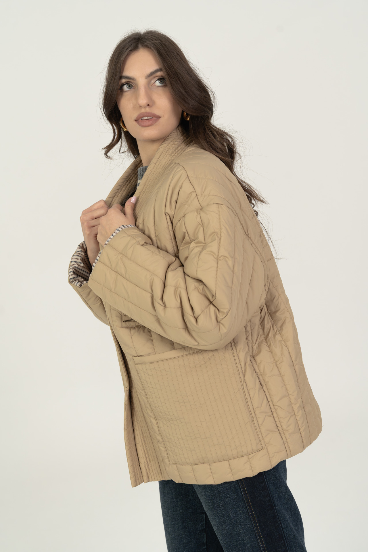 - fodera a contrasto con motivo a righe